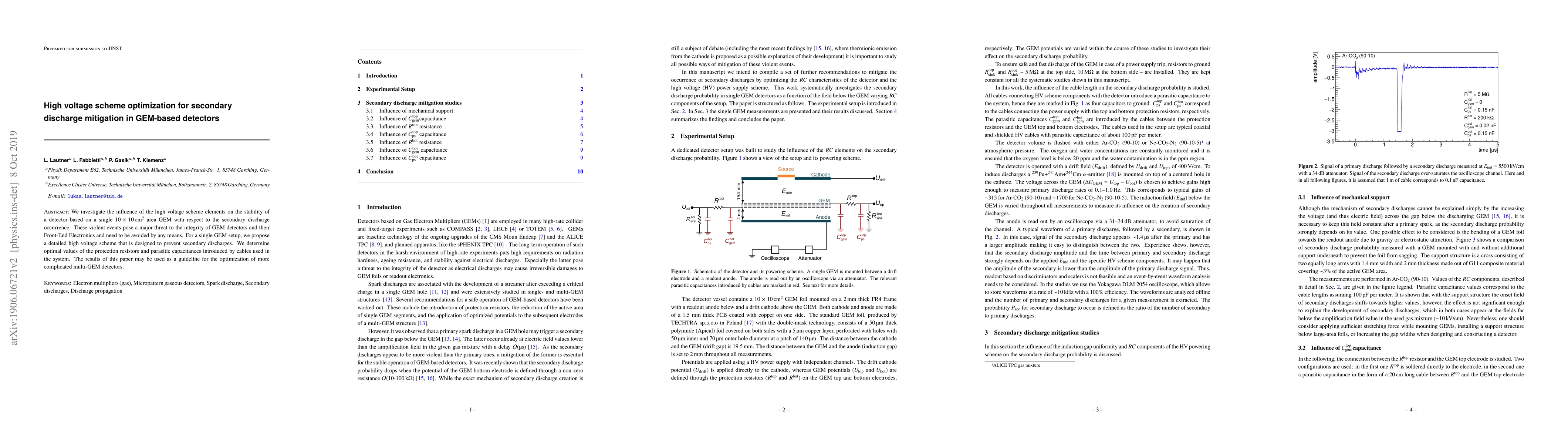 This paper proposes an optimized high voltage scheme to prevent secondary discharges in GEM-based detectors, determining the best values for protection resistors and parasitic capacitances to enhance stability. The findings provide a guideline for optimizing more complex multi-GEM detector setups.