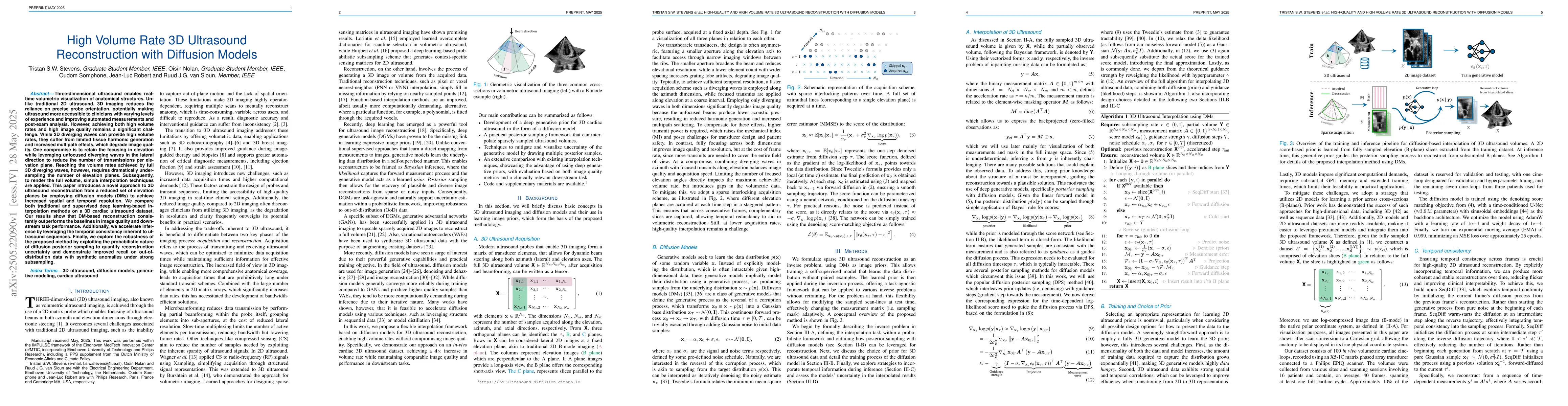 The research introduces a novel approach to 3D ultrasound reconstruction from a reduced set of elevation planes using diffusion models, aiming to achieve increased spatial and temporal resolution.