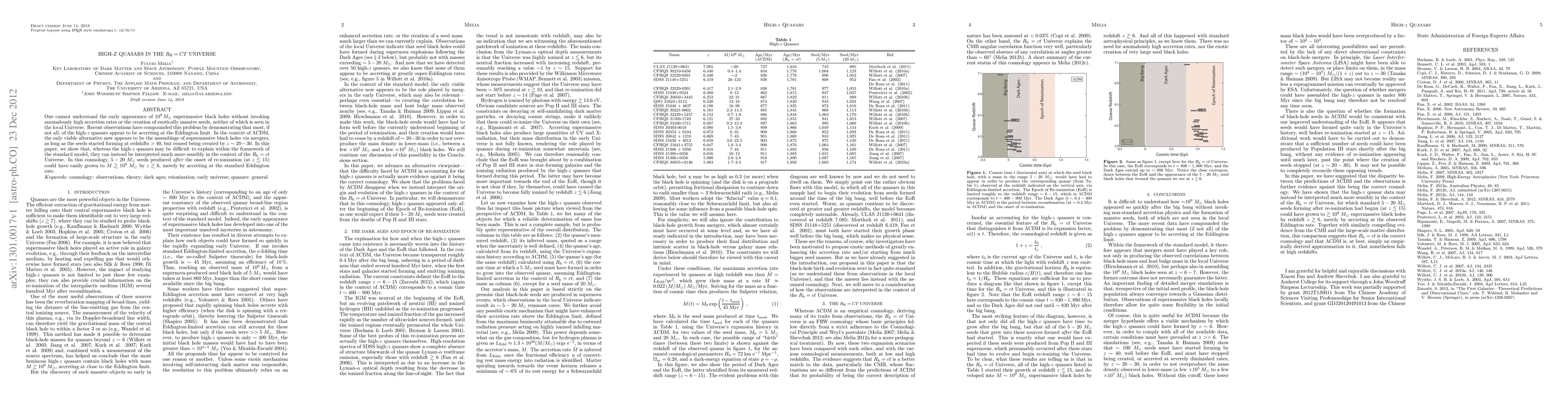 One cannot understand the early appearance of 10^9 solar-mass black holes without invoking anomalously high accretion rates or the creation of exotically massive seeds, neither of which is seen in the local Universe. Recent observations have compounded this problem by demonstrating that most, if not all, of the high-z quasars appear to be accreting at the Eddington limit. In the context of LCDM, the only viable alternative now appears to be the assemblage of supermassive black holes via mergers, as long as the seeds started forming at redshifts >40, but ceased being created by z~20-30. In this paper, we show that, whereas the high-z quasars may be difficult to explain within the framework of the standard model, they can instead be interpreted much more sensibly in the context of the R_h=ct Universe. In this cosmology, 5-20 solar-mass seeds produced after the onset of re-ionization (at z<15) could have easily grown to M>10^9 solar masses by z> 6, merely by accreting at the standard Eddington rate.