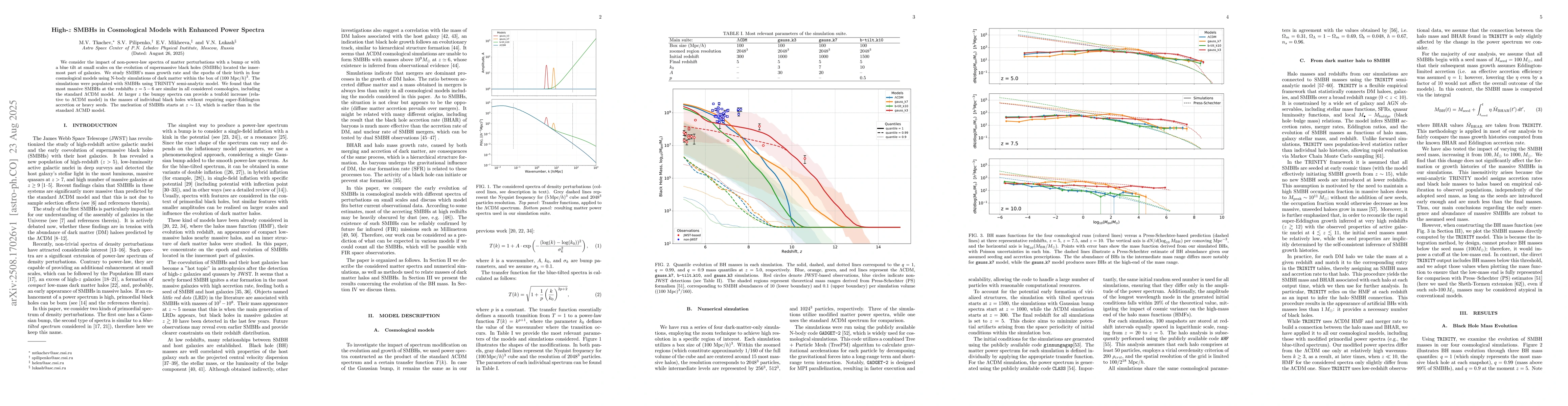 We consider the impact of non-power-law spectra of matter perturbations with a bump or with a blue tilt at small scales on the evolution of supermassive black holes (SMBHs) located the innermost part of galaxies. We study SMBH's mass growth rate and the epochs of their birth in four cosmological models using N-body simulations of dark matter within the box of $(100$~Mpc$/h)^3$. The simulations were populated with SMBHs using TRINITY semi-analytic model. We found that the most massive SMBHs at the redshifts $z=5-6$ are similar in all considered cosmologies, including the standard $\Lambda$CDM model. At larger $z$ the bumpy spectra can provide a tenfold increase (relative to $\Lambda$CDM model) in the masses of individual black holes without requiring super-Eddington accretion or heavy seeds. The nucleation of SMBHs starts at $z\sim 13$, which is earlier than in the standard $\Lambda$CMD model.