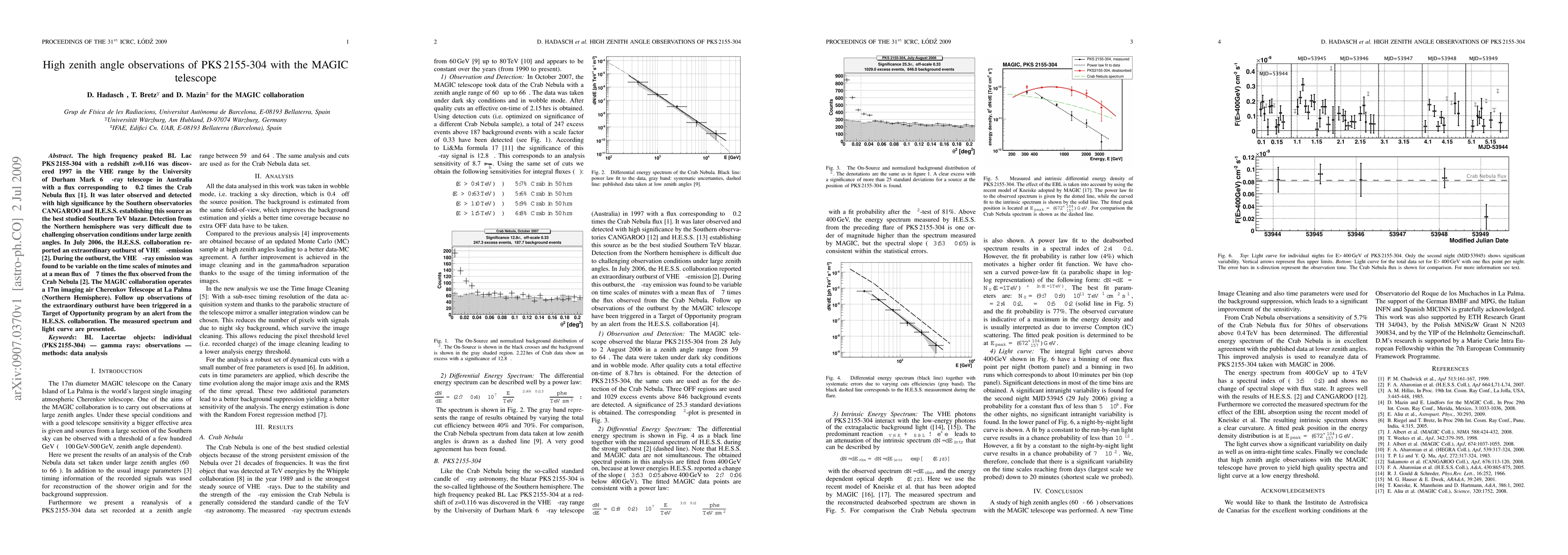 The MAGIC telescope observed the high zenith angle outburst of the VHE gamma-ray source PKS 2155-304 in July 2006, following an extraordinary emission detected by H.E.S.S. The study presents the measured spectrum and light curve of the variable gamma-ray emission during this event.