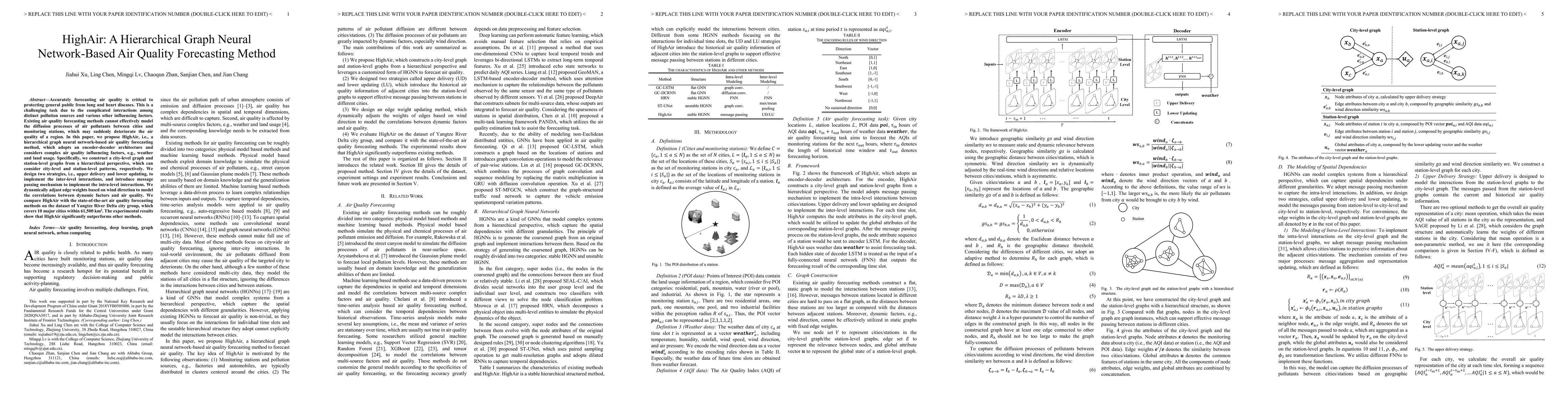 HighAir proposes a hierarchical graph neural network for air quality forecasting, utilizing city-level and station-level graphs to model complex interactions between pollution sources and influencing factors. Experimental results demonstrate its superior performance over state-of-the-art methods in the Yangtze River Delta city group.