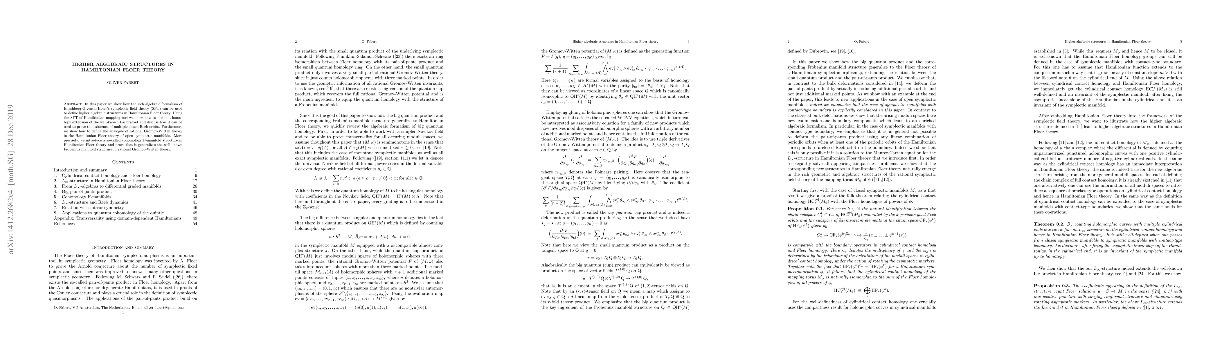 This paper demonstrates how symplectic field theory (SFT) can define higher algebraic structures in Hamiltonian Floer theory, including a homotopy extension of the Lie bracket, proving multiple closed Reeb orbits, and introducing a cohomology F-manifold structure that generalizes the Frobenius manifold in rational Gromov-Witten theory.