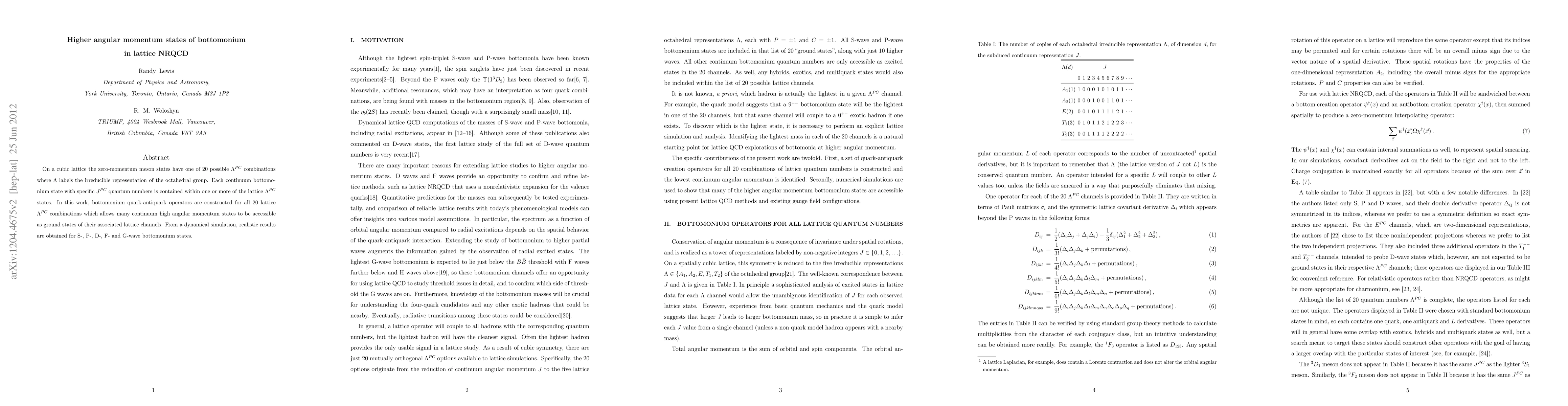 This paper constructs bottomonium quark-antiquark operators on a lattice for various angular momentum states, enabling the study of high angular momentum continuum states as ground states in lattice channels. Realistic results for S-, P-, D-, F-, and G-wave bottomonium states are obtained from a dynamical simulation.