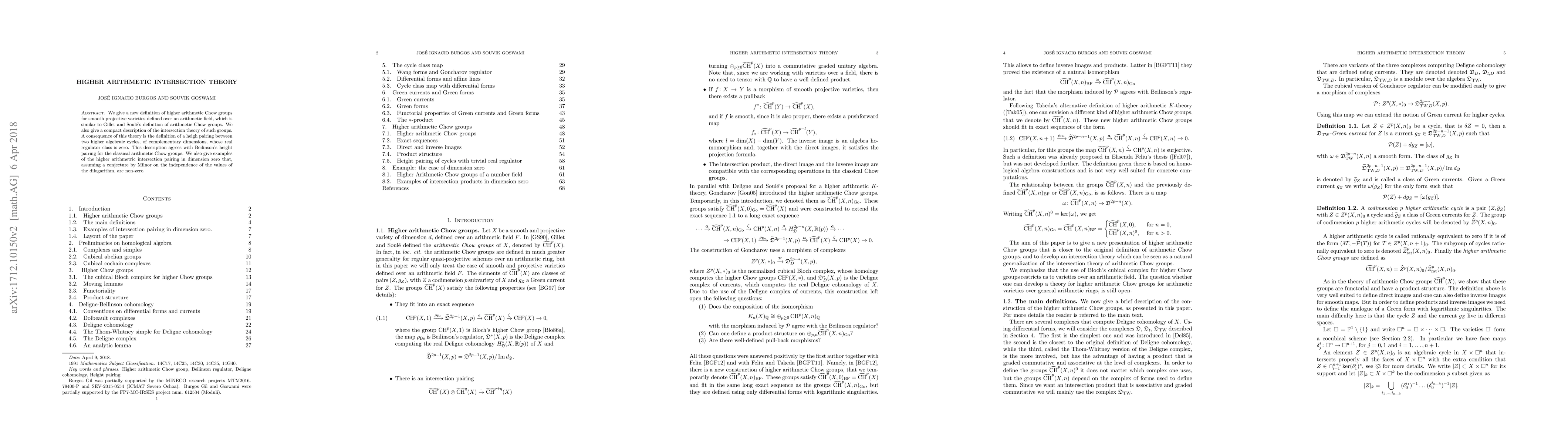 This paper introduces a new definition of higher arithmetic Chow groups for smooth projective varieties over number fields, akin to Gillet and Soulé's original definition. It also presents a compact intersection theory for these groups, defining a height pairing between complementary dimensional cycles with a zero real regulator class, aligning with Beilinson's classical arithmetic Chow groups.