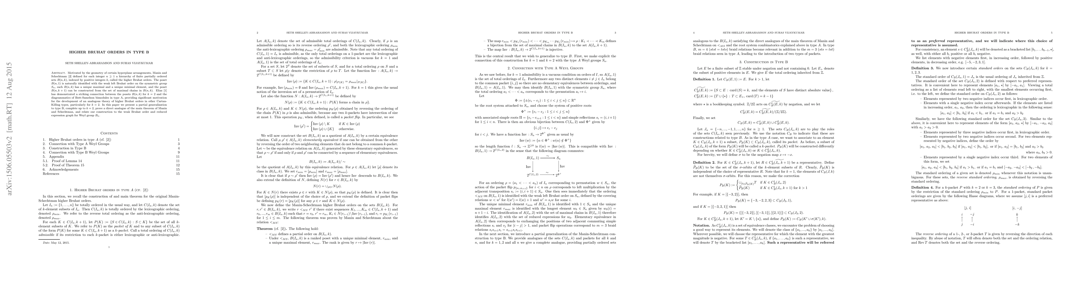 This paper generalizes the concept of higher Bruhat orders to type B Weyl groups, constructing posets B(n, k) up to k=2 and proving a direct analogue of Manin and Schechtman's main theorem. It also connects these posets to the weak Bruhat order and reduced expression graph for type B.