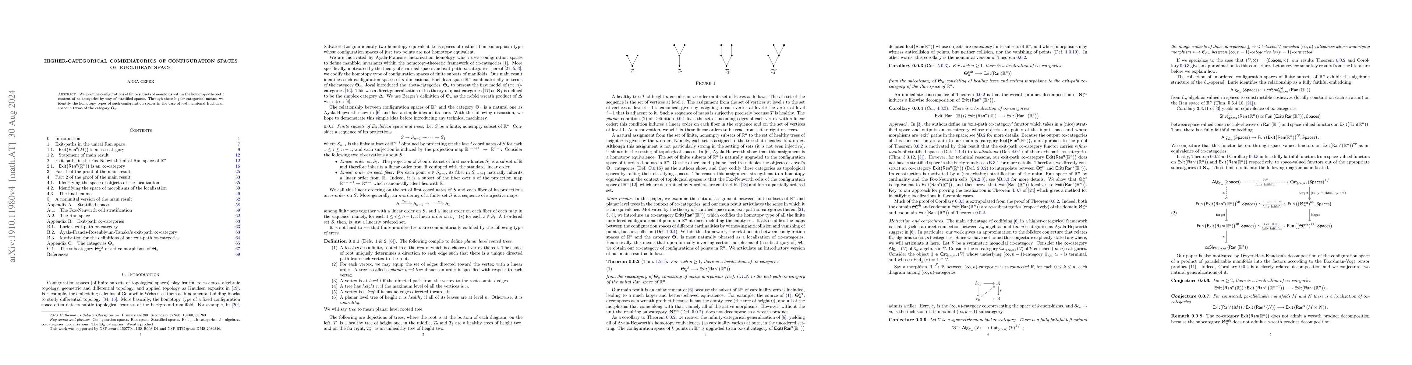 We approach manifold topology by examining configurations of finite subsets of manifolds within the homotopy-theoretic context of $\infty$-categories by way of stratified spaces. Through these higher categorical means, we identify the homotopy types of such configuration spaces in the case of Euclidean space in terms of the category $\mathbf{\Theta}_n$.