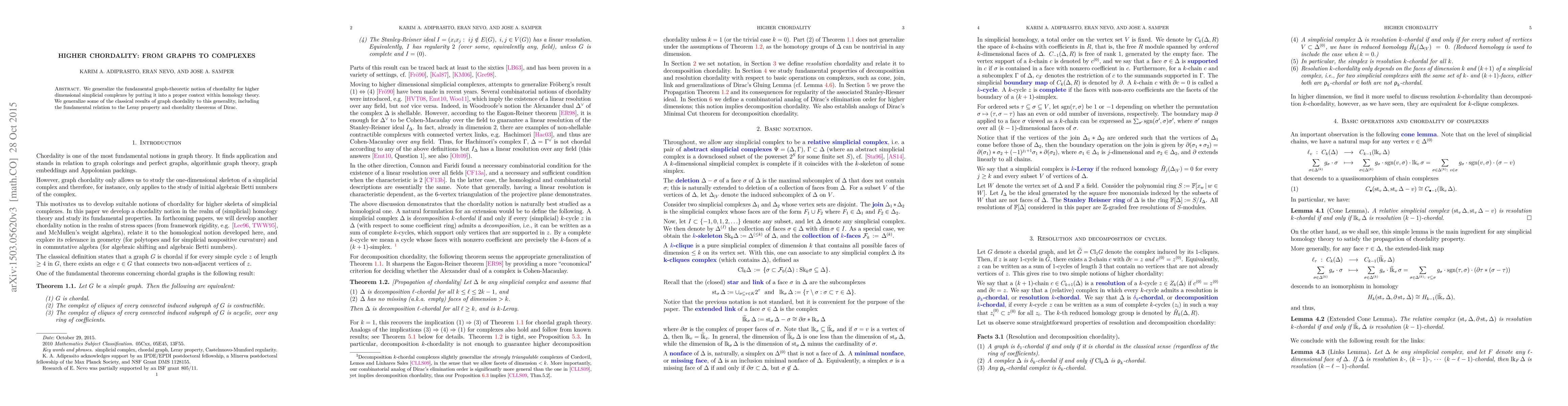 This paper generalizes the concept of chordality from graphs to higher-dimensional simplicial complexes, embedding it within homology theory. It extends classical chordality results, linking it to the Leray property and Dirac's chordality theorems in this broader context.