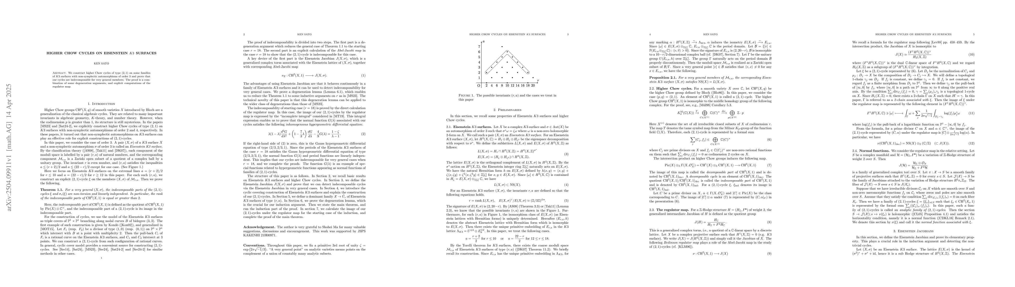 Researchers constructed higher Chow cycles on K3 surfaces with specific automorphisms, proving some cycles are indecomposable for very general members.
