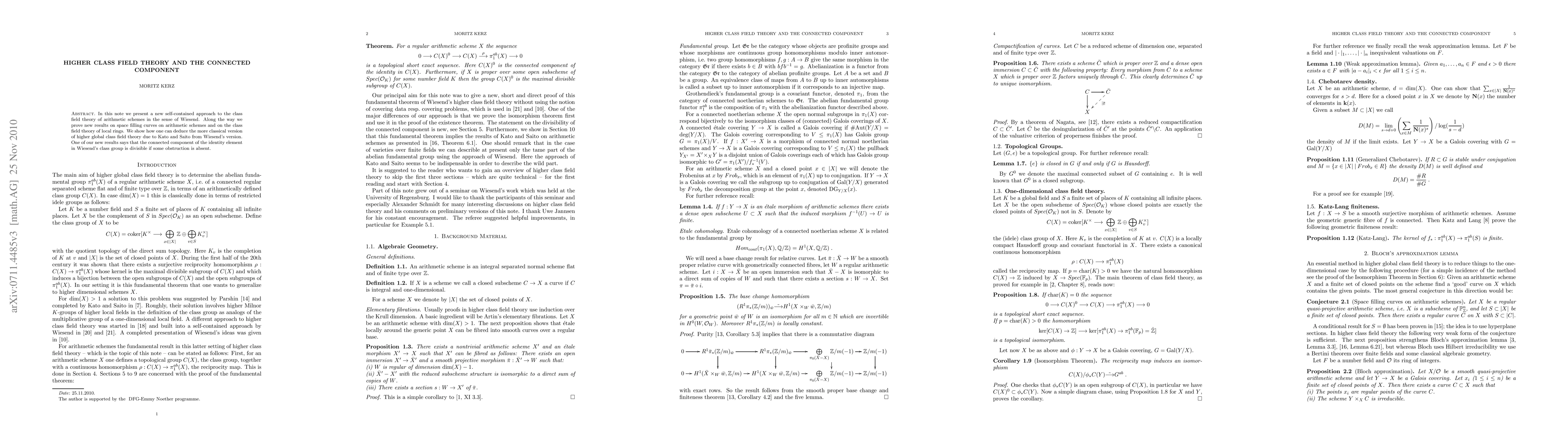 In this note we present a new self-contained approach to the class field theory of arithmetic schemes in the sense of Wiesend. Along the way we prove new results on space filling curves on arithmetic schemes and on the class field theory of local rings. We show how one can deduce the more classical version of higher global class field theory due to Kato and Saito from Wiesend's version. One of our new results says that the connected component of the identity element in Wiesend's class group is divisible if some obstruction is absent.