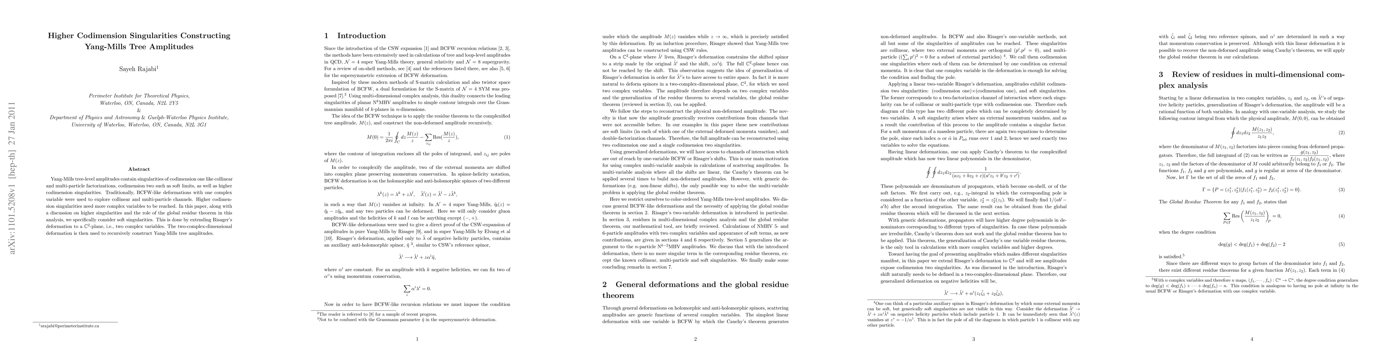 Yang-Mills tree-level amplitudes contain singularities of codimension one like collinear and multi-particle factorizations, codimension two such as soft limits, as well as higher codimension singularities. Traditionally, BCFW-like deformations with one complex variable were used to explore collinear and multi-particle channels. Higher codimension singularities need more complex variables to be reached. In this paper, along with a discussion on higher singularities and the role of the global residue theorem in this analysis, we specifically consider soft singularities. This is done by extending Risager's deformation to a $\mathbb C^2$-plane, i.e., two complex variables. The two-complex-dimensional deformation is then used to recursively construct Yang-Mills tree amplitudes.