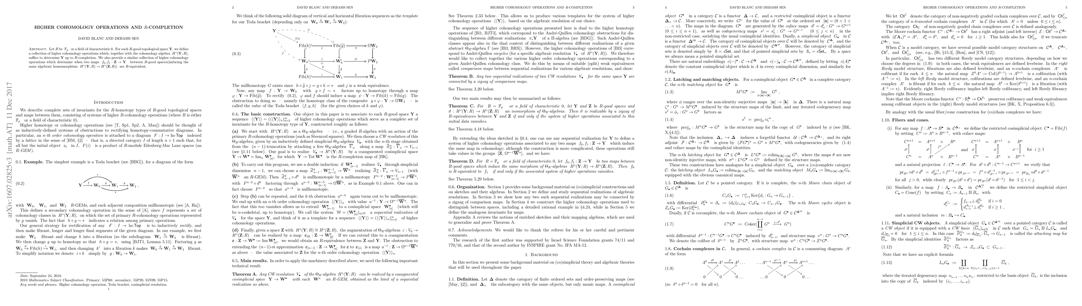 This paper defines higher cohomology operations for $R$-good topological spaces, where $R$ is a finite field or a field of characteristic $0$, and shows that these operations, along with the cohomology algebra, determine the space up to $R$-completion. It also establishes a set of operations to determine $R$-equivalence of maps between such spaces.