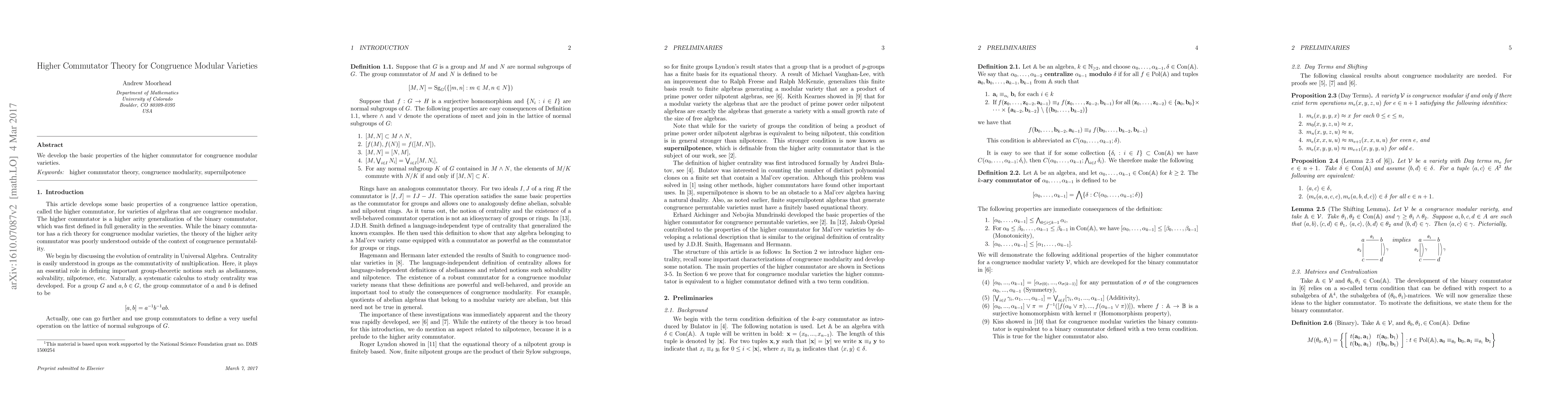 Summary: This paper explores the foundational characteristics of higher commutators within the context of congruence modular varieties, providing insights into their structural properties.