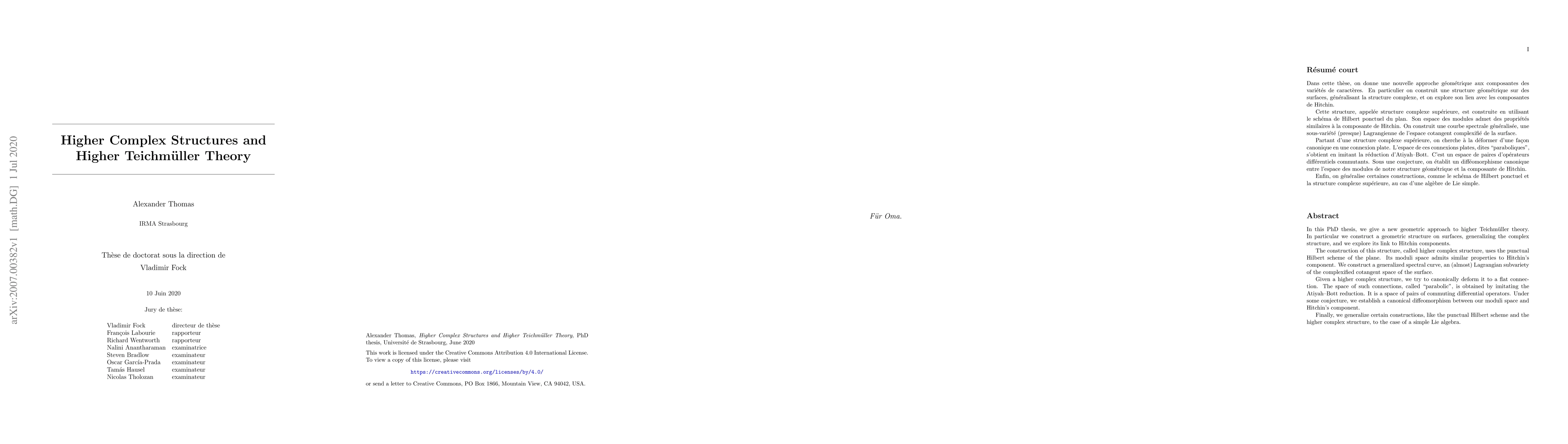 This paper introduces a new geometric approach to higher Teichmüller theory, constructing a higher complex structure on surfaces that generalizes the traditional complex structure. It explores the connection between this structure and Hitchin components, establishing a canonical diffeomorphism under certain conjectures.