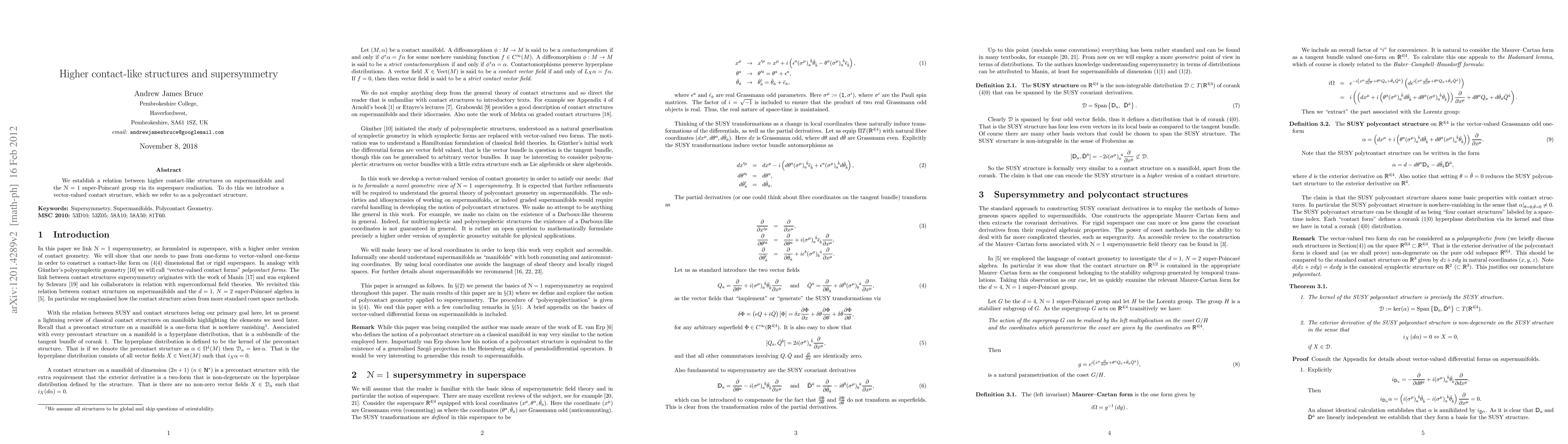 We establish a relation between higher contact-like structures on supermanifolds and the N = 1 super-Poincare group via its superspace realisation. To do this we introduce a vector-valued contact structure, which we refer to as a polycontact structure.