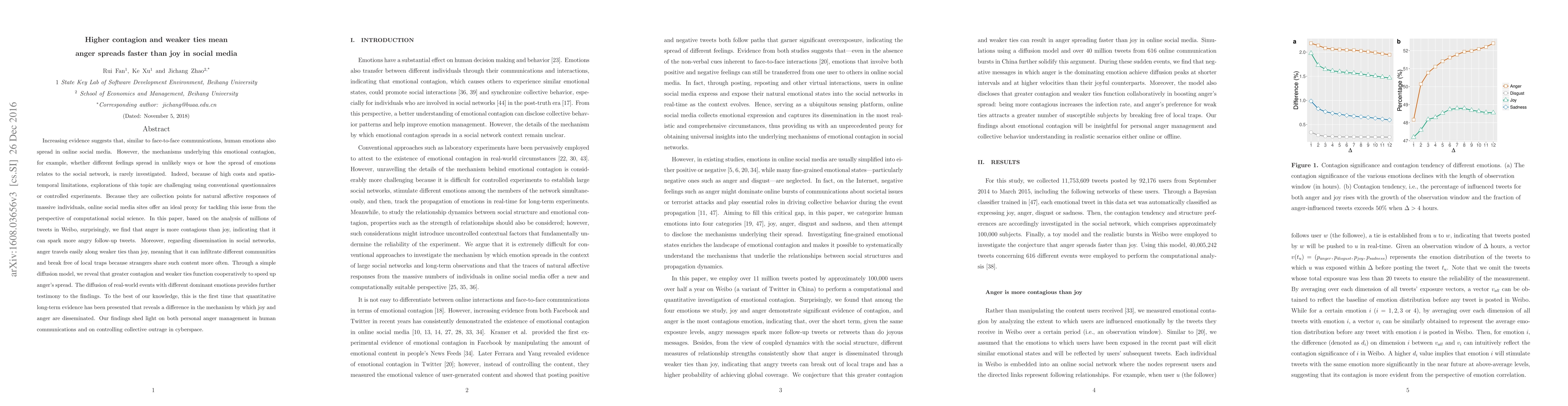 This research reveals that anger spreads faster than joy on social media due to higher contagion and its ability to traverse weaker social ties, infiltrating diverse communities. The study, based on millions of Weibo tweets, provides quantitative evidence of these mechanisms, offering insights into emotional contagion and its implications for managing collective outrage.