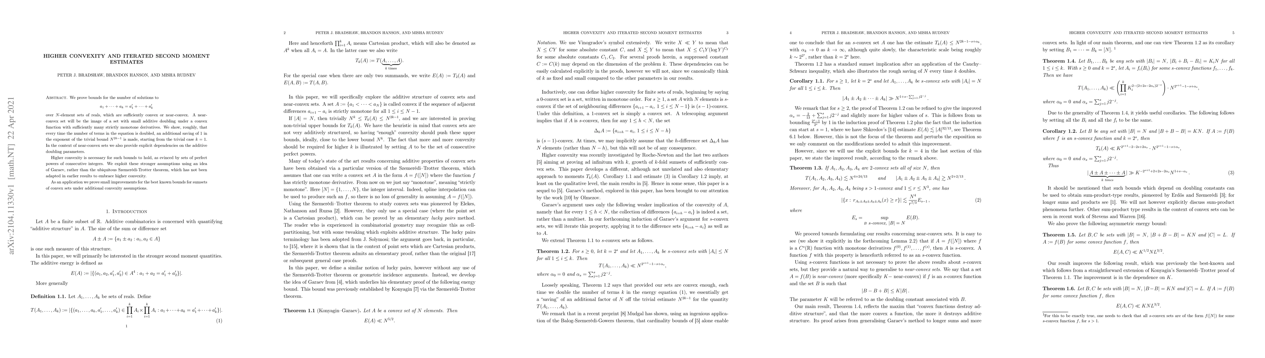 We prove bounds for the number of solutions to $$a_1 + \dots + a_k = a_1' + \dots + a_k'$$ over $N$-element sets of reals, which are sufficiently convex or near-convex. A near-convex set will be the image of a set with small additive doubling under a convex function with sufficiently many strictly monotone derivatives. We show, roughly, that every time the number of terms in the equation is doubled, an additional saving of $1$ in the exponent of the trivial bound $N^{2k-1}$ is made, starting from the trivial case $k=1$. In the context of near-convex sets we also provide explicit dependencies on the additive doubling parameters. Higher convexity is necessary for such bounds to hold, as evinced by sets of perfect powers of consecutive integers. We exploit these stronger assumptions using an idea of Garaev, rather than the ubiquitous Szemer\'edi-Trotter theorem, which has not been adapted in earlier results to embrace higher convexity. As an application we prove small improvements for the best known bounds for sumsets of convex sets under additional convexity assumptions.