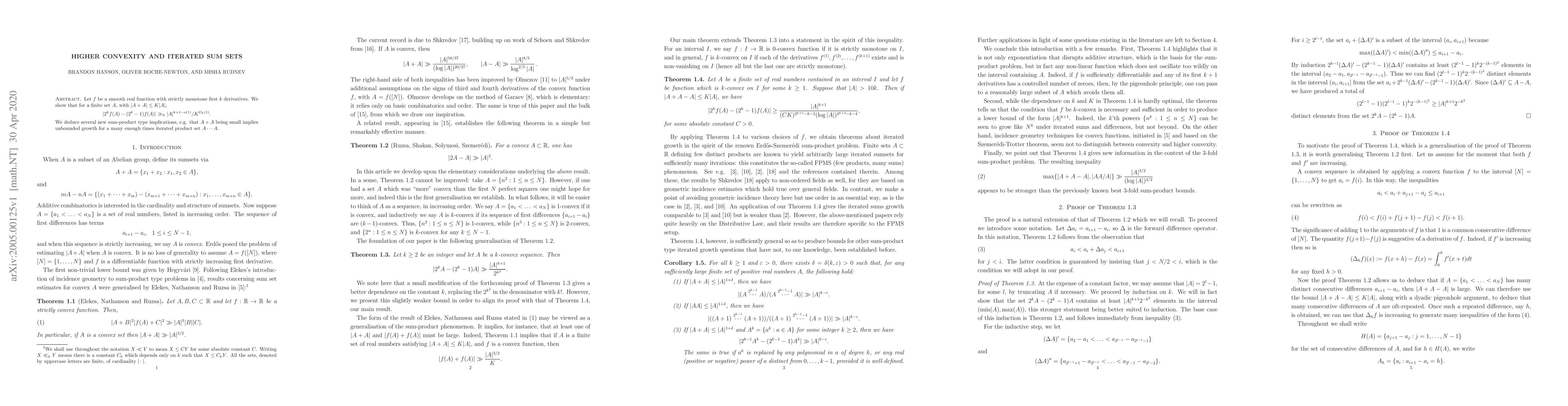 Let $f$ be a smooth real function with strictly monotone first $k$ derivatives. We show that for a finite set $A$, with $|A+A|\leq K|A|$, $|2^kf(A)-(2^k-1)f(A)|\gg_k |A|^{k+1-o(1)}/K^{O_k(1)}$. We deduce several new sum-product type implications, e.g. that $A+A$ being small implies unbounded growth for a many enough times iterated product set $A \cdots A$.