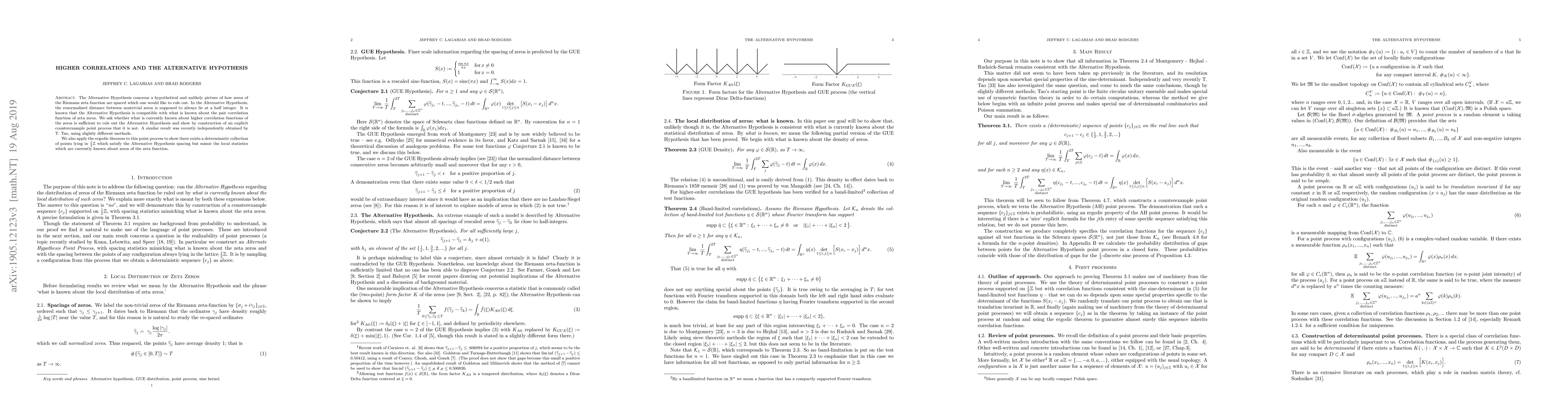 The Alternative Hypothesis concerns a hypothetical and unlikely picture of how zeros of the Riemann zeta function are spaced which one would like to rule out. In the Alternative Hypothesis, the renormalized distance between nontrivial zeros is supposed to always lie at a half integer. It is known that the Alternative Hypothesis is compatible with what is known about the pair correlation function of zeta zeros. We ask whether what is currently known about higher correlation functions of the zeros is sufficient to rule out the Alternative Hypothesis and show by construction of an explicit counterexample point process that it is not. A similar result was recently independently obtained by T. Tao, using slightly different methods. We also apply the ergodic theorem to this point process to show there exists a deterministic collection of points lying in $\tfrac{1}{2}\mathbb{Z}$ which satisfy the Alternative Hypothesis spacing but mimic all statistics which are currently known about zeros of the zeta function.