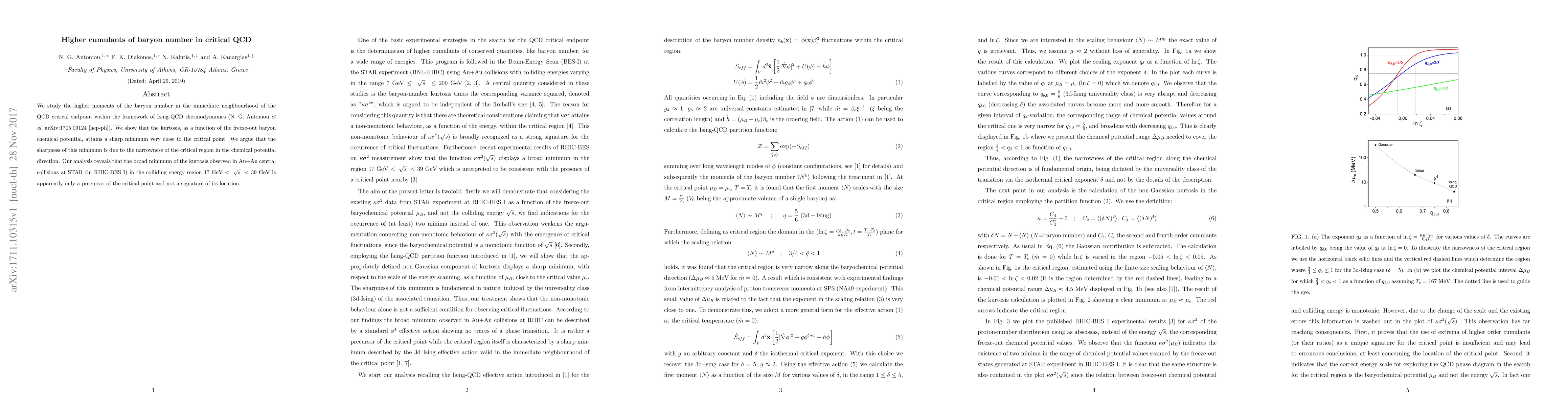 We study the higher moments of the baryon number in the immediate neighbourhood of the QCD critical endpoint within the framework of Ising-QCD thermodynamics (N.~G. Antoniou {\it et al}, arXiv:1705.09124 [hep-ph]). We show that the kurtosis, as a function of the freeze-out baryon chemical potential, attains a sharp minimum very close to the critical point. We argue that the sharpness of this minimum is due to the narrowness of the critical region in the chemical potential direction. Our analysis reveals that the broad minimum of the kurtosis observed in Au+Au central collisions at STAR (in RHIC-BES I) in the colliding energy region $17$ GeV $< ~\sqrt{s}~<$ $39$ GeV is apparently only a precursor of the critical point and not a signature of its location.