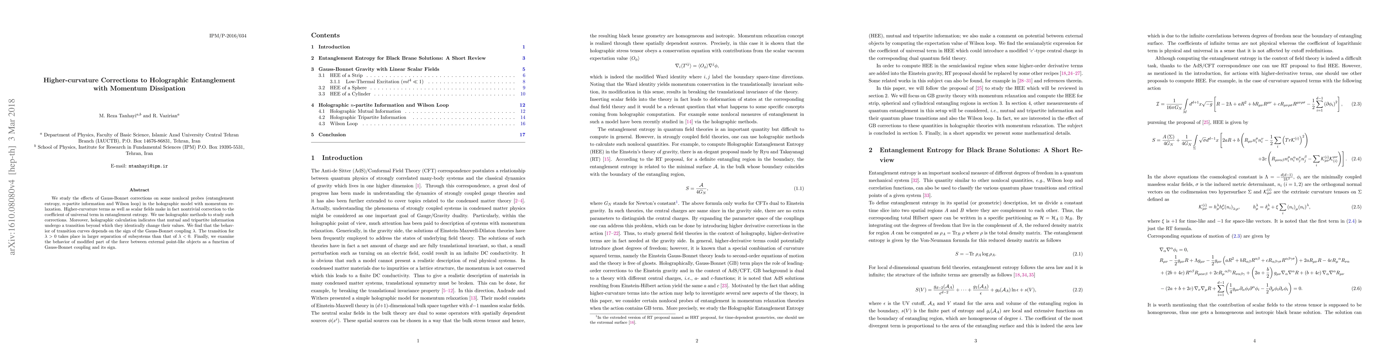 This paper investigates the impact of Gauss-Bonnet corrections on nonlocal measures (entanglement entropy, $n$-partite information, and Wilson loop) in a holographic model with momentum relaxation. It finds that these higher-curvature terms alter the universal term in entanglement entropy, and reveals a phase transition in mutual and tripartite information, whose behavior depends on the sign of the Gauss-Bonnet coupling $\lambda$.