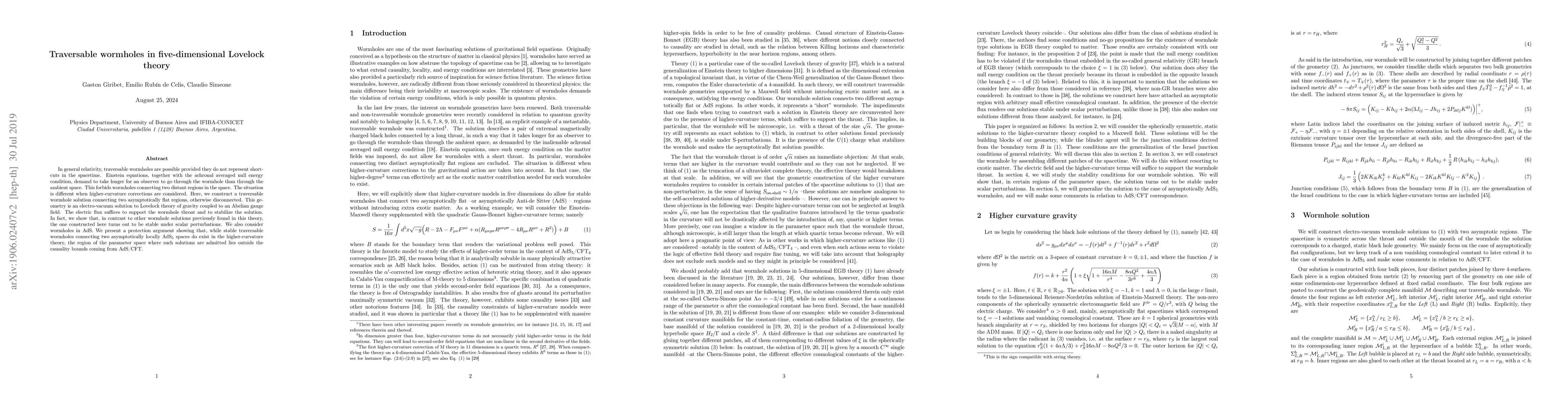 This paper constructs a stable, traversable wormhole solution in Lovelock gravity coupled with an Abelian gauge field, demonstrating that higher-curvature corrections allow for wormholes connecting otherwise disconnected regions. The solution is stable under scalar perturbations and extends to asymptotically locally AdS$_5$ spaces, though it lies outside the causality bounds of AdS/CFT.