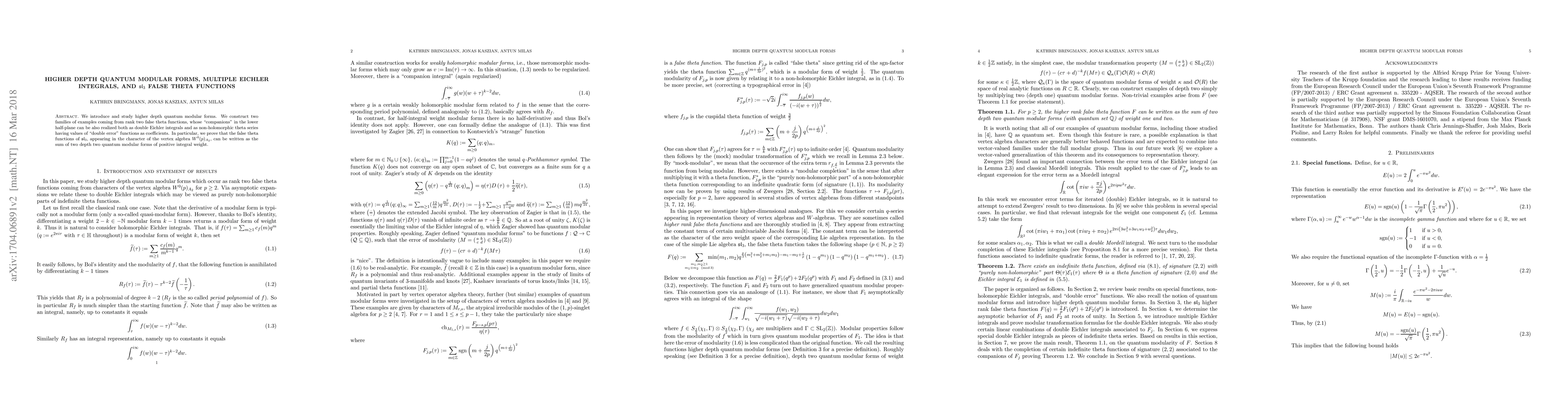 Summary: This paper introduces higher depth quantum modular forms and constructs examples from rank two false theta functions. It reveals that these functions can be expressed as double Eichler integrals or non-holomorphic theta series with "double error" function coefficients, specifically identifying an $\frak{sl}_3$ false theta function in a vertex algebra as a sum of two depth two quantum modular forms.