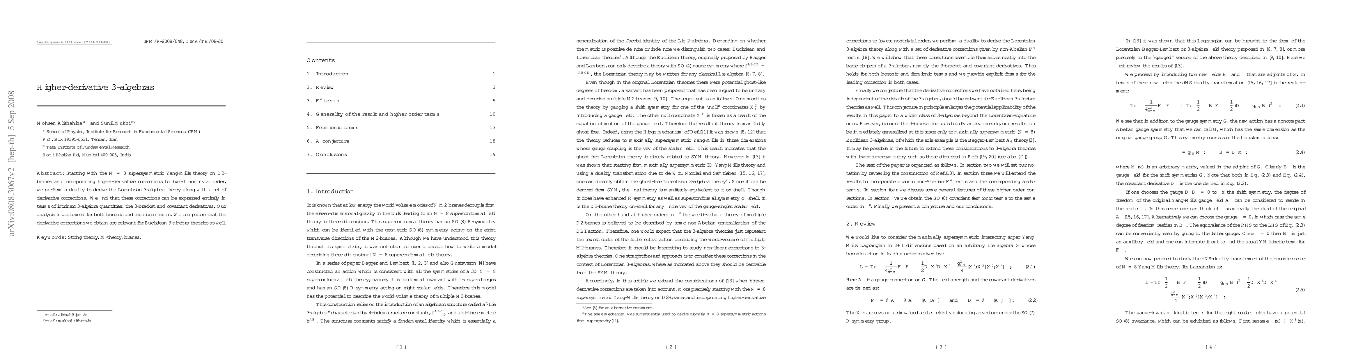 This paper derives Lorentzian 3-algebra theory from N=8 supersymmetric Yang-Mills theory on D2-branes, incorporating higher-derivative corrections expressed in terms of intrinsic 3-algebra quantities. The analysis covers both bosonic and fermionic terms, and the authors conjecture these corrections are also relevant for Euclidean 3-algebra theories.