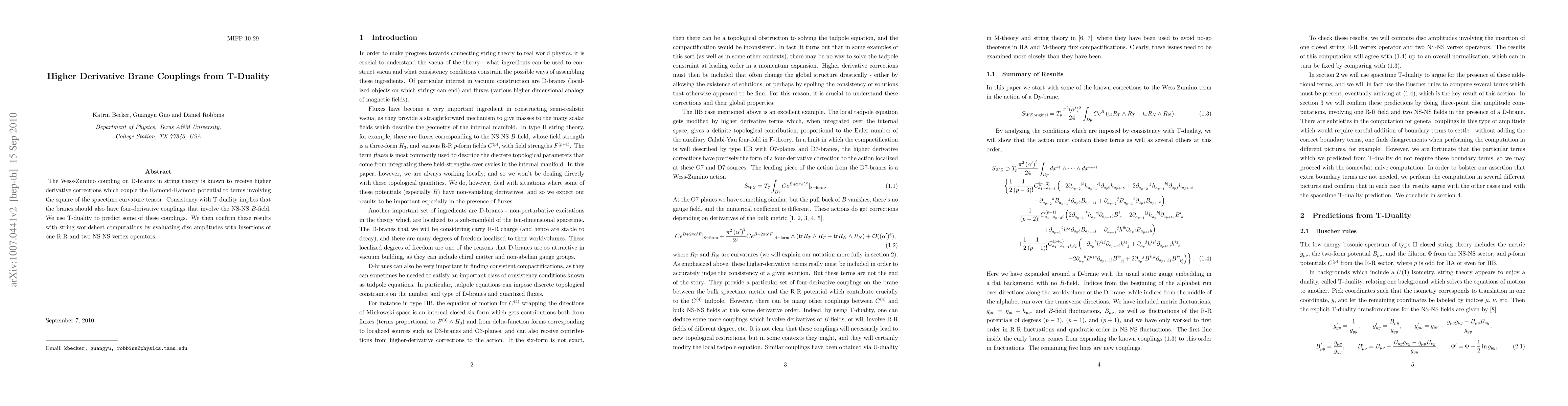 This paper predicts higher derivative brane couplings from T-duality that involve the NS-NS B-field, consistent with string theory's Wess-Zumino coupling. It confirms these predictions using string worldsheet computations evaluating disc amplitudes with R-R and NS-NS vertex operators.