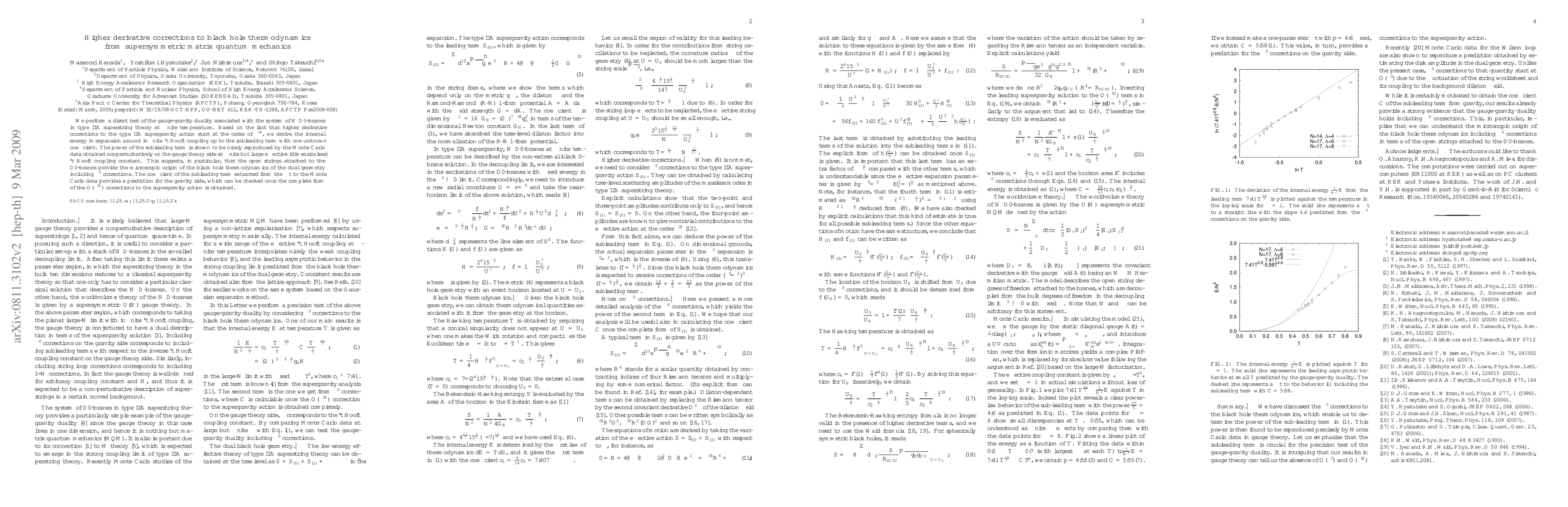 We perform a direct test of the gauge-gravity duality associated with the system of N D0-branes in type IIA superstring theory at finite temperature. Based on the fact that higher derivative corrections to the type IIA supergravity action start at the order of \alpha'^3, we derive the internal energy in expansion around infinite 't Hooft coupling up to the subleading term with one unknown coefficient. The power of the subleading term is shown to be nicely reproduced by the Monte Carlo data obtained nonperturbatively on the gauge theory side at finite but large effective (dimensionless) 't Hooft coupling constant. This suggests, in particular, that the open strings attached to the D0-branes provide the microscopic origin of the black hole thermodynamics of the dual geometry including \alpha' corrections. The coefficient of the subleading term extracted from the fit to the Monte Carlo data provides a prediction for the gravity side, which can be checked once the complete form of the O(\alpha'^3) corrections to the supergravity action is obtained.