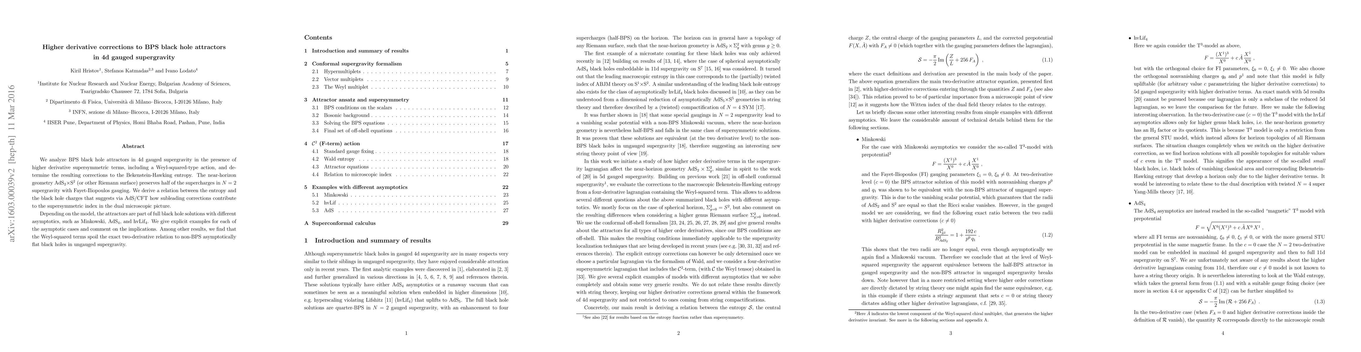 This paper investigates BPS black hole attractors in 4d gauged supergravity with higher derivative corrections, determining their impact on Bekenstein-Hawking entropy and exploring connections to the supersymmetric index via AdS/CFT. It finds that Weyl-squared terms disrupt the precise relation to non-BPS black holes in ungauged supergravity.