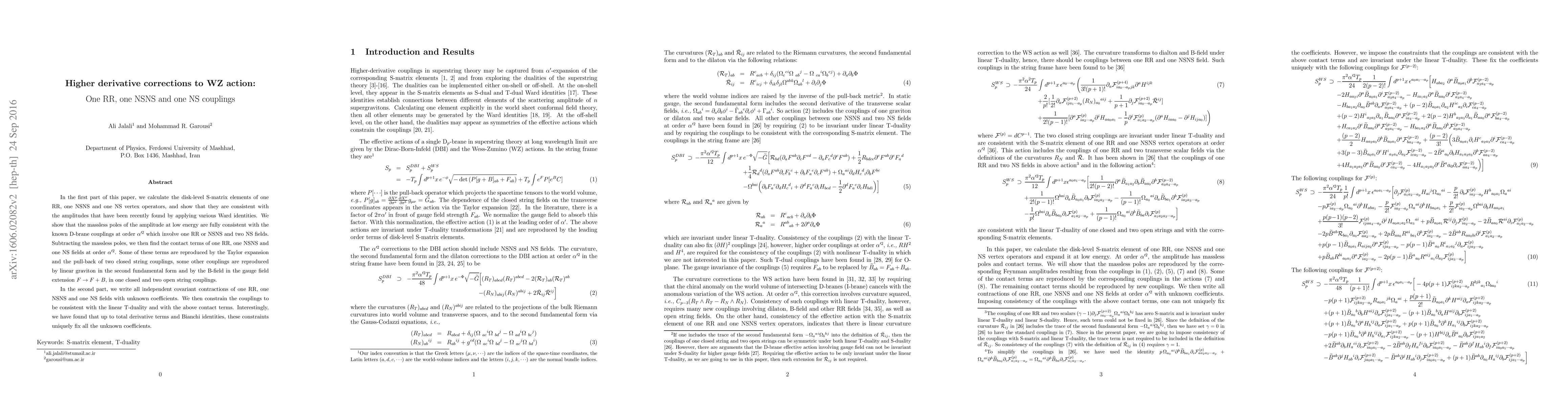 This paper calculates S-matrix elements for one RR, one NSNS, and one NS vertex operators, confirming consistency with recent Ward identity results. It also determines contact terms for these fields at order $\alpha'^2$, showing that some are derived from closed string couplings and others from the B-field. The paper further constrains unknown coefficients of these couplings to be consistent with linear T-duality and previously found contact terms, uniquely fixing them up to total derivatives and Bianchi identities.