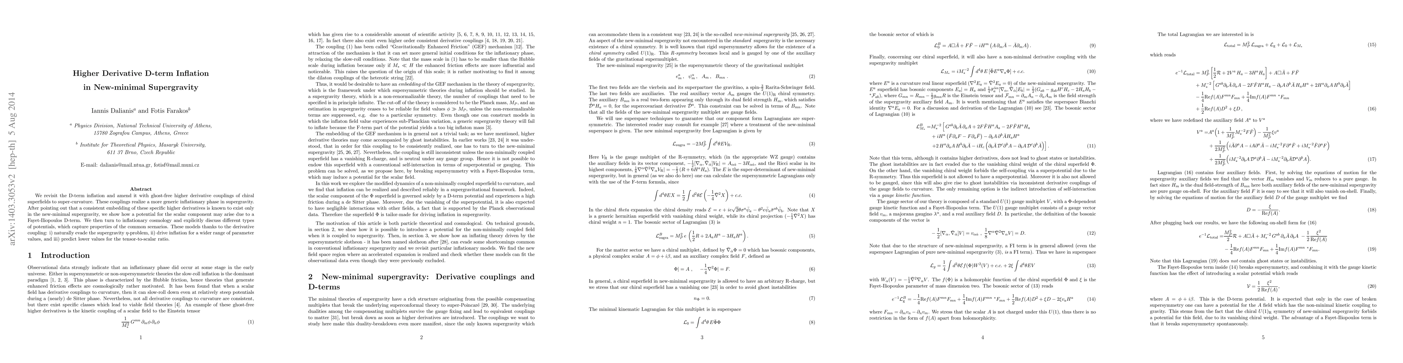 We revisit the D-term inflation and amend it with ghost-free higher derivative couplings of chiral superfields to super-curvature. These couplings realize a more generic inflationary phase in supergravity. After pointing out that a consistent embedding of these specific higher derivatives is known to exist only in the new-minimal supergravity, we show how a potential for the scalar component may arise due to a Fayet-Iliopoulos D-term. We then turn to inflationary cosmology and explicitly discuss different types of potentials, which capture properties of the common scenarios. These models thanks to the derivative coupling: i) naturally evade the supergravity $\eta$-problem, ii) drive inflation for a wider range of parameter values, and iii) predict lower values for the tensor-to-scalar ratio.