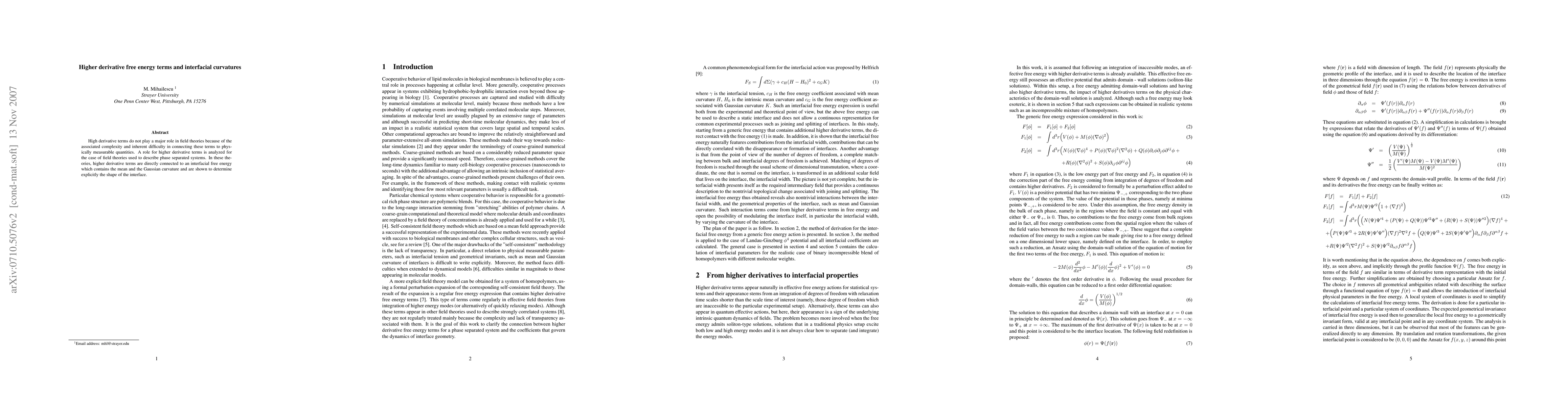 This paper explores the significance of higher derivative terms in field theories for phase-separated systems, demonstrating that these terms are directly linked to interfacial free energy, which includes mean and Gaussian curvature, and explicitly determine the interface shape.