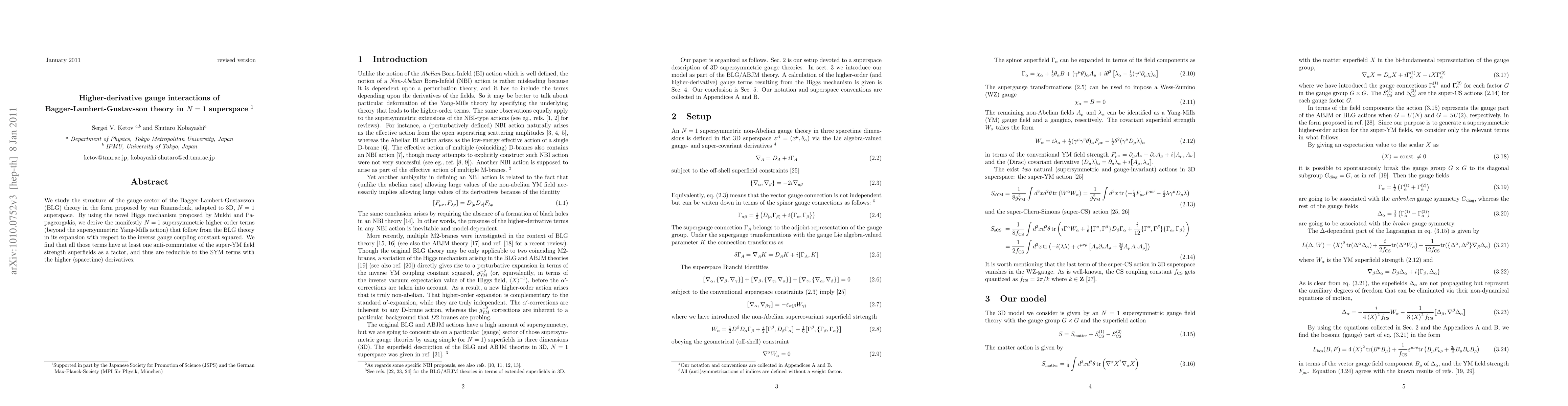 We study the structure of the gauge sector of the Bagger-Lambert-Gustavsson (BLG) theory in the form proposed by van Raamsdonk, adapted to 3D, N=1 superspace. By using the novel Higgs mechanism proposed by Mukhi and Papageorgakis, we derive the manifestly N=1 supersymmetric higher-order terms (beyond the supersymmetric Yang-Mills action) that follow from the BLG theory in its expansion with respect to the inverse gauge coupling constant squared. We find that all those terms have at least one anti-commutator of the super-YM field strength superfields as a factor, and thus are reducible to the SYM terms with the higher (spacetime) derivatives.