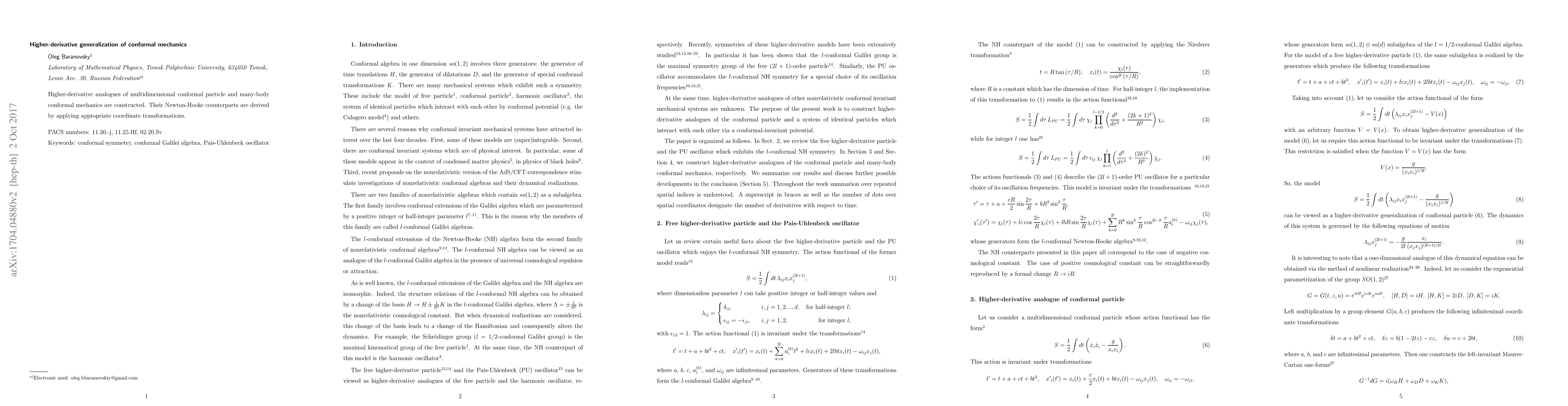 This paper constructs higher-derivative generalizations of multidimensional conformal mechanics and derives their Newton-Hooke counterparts through specific coordinate transformations. The focus is on extending conformal mechanics principles to include higher-order derivative terms.