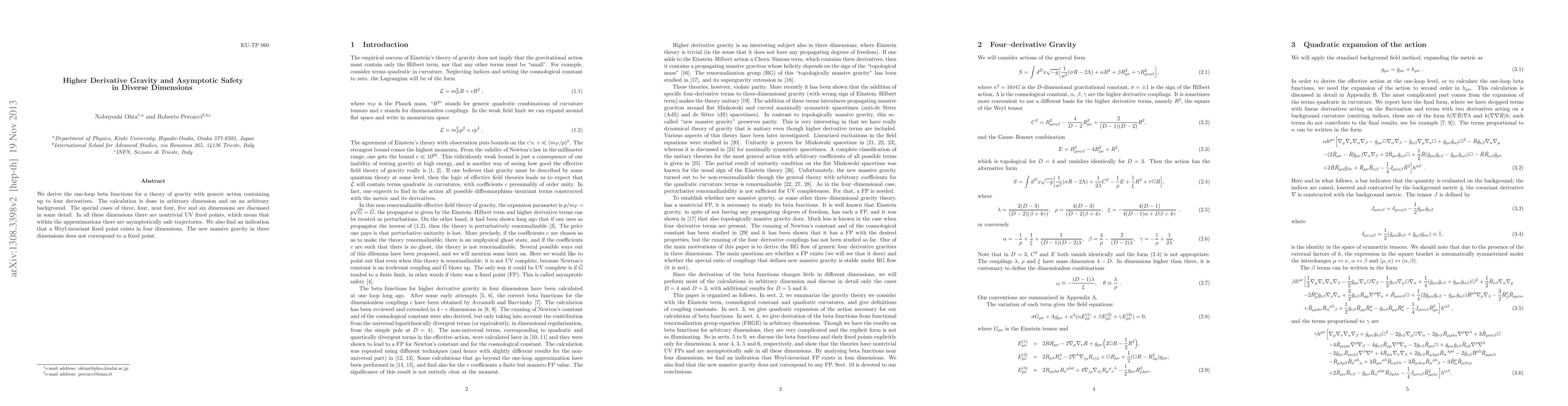 We derive the one-loop beta functions for a theory of gravity with generic action containing up to four derivatives. The calculation is done in arbitrary dimension and on an arbitrary background. The special cases of three, four, near four, five and six dimensions are discussed in some detail. We find that the theories have nontrivial UV fixed points and are asymptotically safe in all dimensions we study. We also find an indication that Weyl-invariant fixed point exists in four dimensions. The new massive gravity in three dimensions does not correspond to any fixed point.