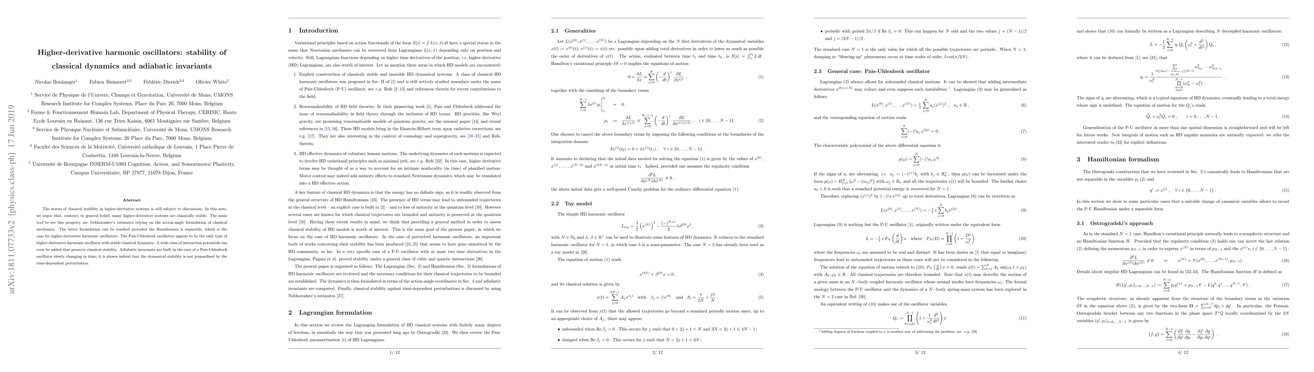 This paper argues that many higher-derivative harmonic oscillators, contrary to common belief, exhibit classical stability, utilizing Nekhoroshev's estimates and the action-angle formulation of classical mechanics. The Pais-Uhlenbeck oscillators are identified as the only type with stable classical dynamics, and adiabatic invariants are shown to remain intact under slow time-dependent perturbations.