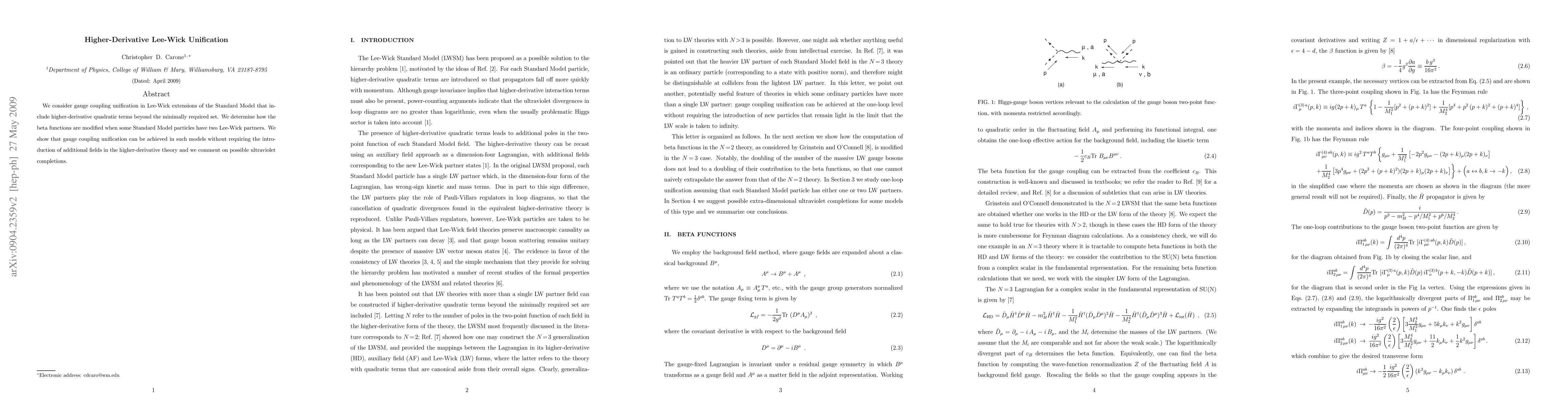 This paper explores gauge coupling unification in Lee-Wick extensions of the Standard Model that incorporate higher-derivative terms. It demonstrates that such unification can be achieved without additional fields, and discusses potential ultraviolet completions.