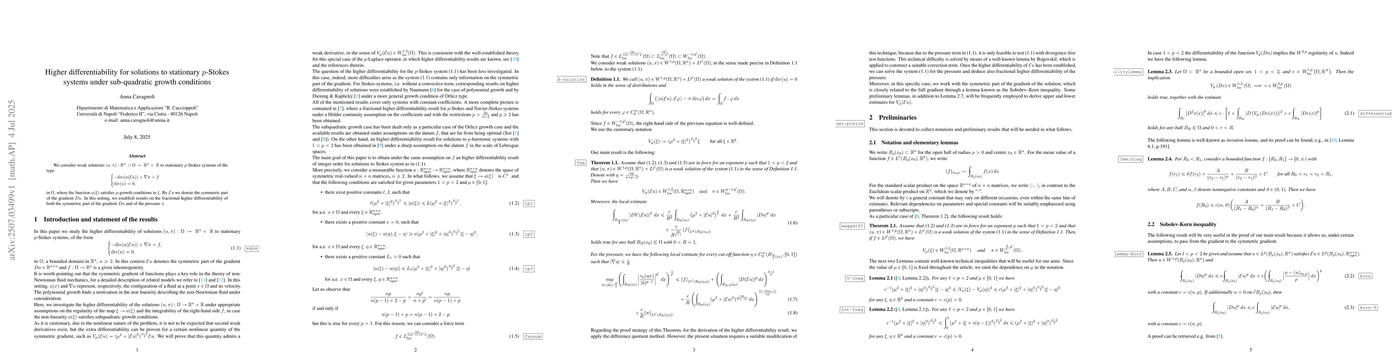 We consider weak solutions $(u,\pi):\mathbb{R}^n\supset\Omega\to\ \mathbb{R}^n\times\ \mathbb{R}$ to stationary $p$-Stokes systems of the type \[ \begin{cases} -\mathrm{div} (a(\mathcal{E} u))+\nabla\pi=f \\ \mathrm{div}(u)=0, \end{cases} \] in $\Omega,$ where the function $a(\xi)$ satisfies $p$-growth conditions in $\xi$. By $\mathcal{E} u$ we denote the symmetric part of the gradient $Du$. In this setting, we establish results on the fractional higher differentiability of both the symmetric part of the gradient $ D u$ and of the pressure $\pi$.