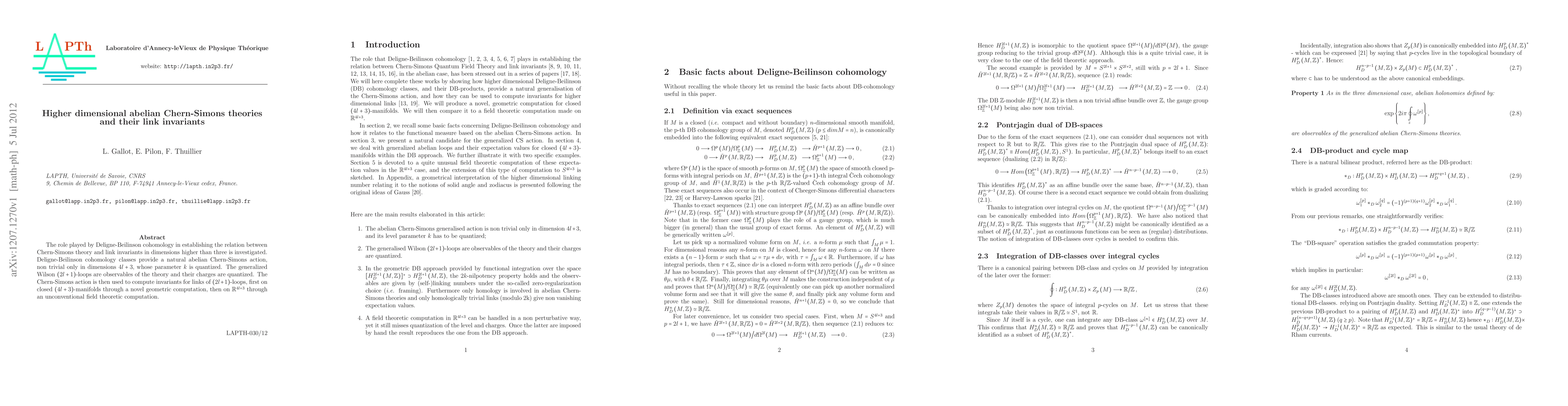 This paper investigates how Deligne-Beilinson cohomology relates higher-dimensional abelian Chern-Simons theories to link invariants. It demonstrates that these cohomology classes yield a natural abelian Chern-Simons action, computable for dimensions $4l+3$, and uses it to compute invariants for $(2l+1)$-loop links through both geometric and field-theoretic methods.