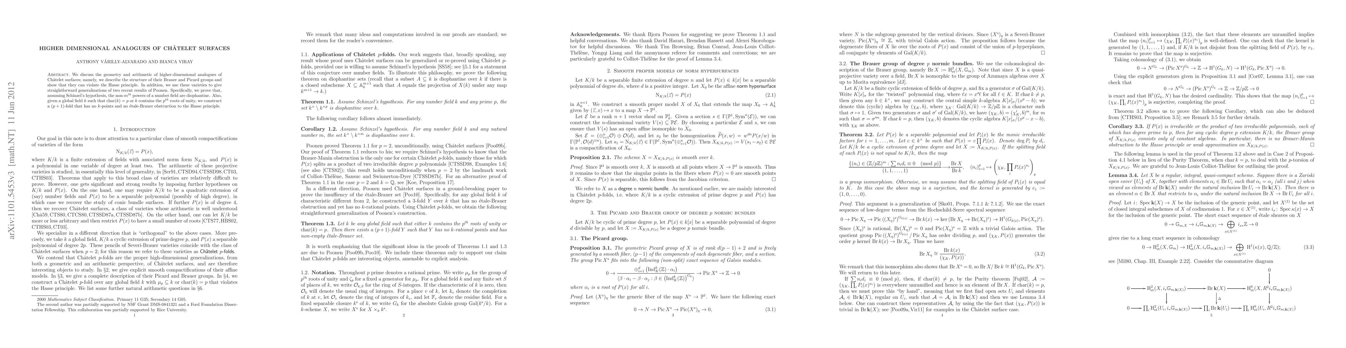 This paper explores the geometry and arithmetic of higher-dimensional analogues of Ch\^atelet surfaces, focusing on their Brauer and Picard groups and demonstrating violations of the Hasse principle. It also generalizes two recent results by Poonen, proving diophine properties of non-m^{th} powers under Schinzel's hypothesis and constructing a (p+1)-fold without k-points for certain fields.