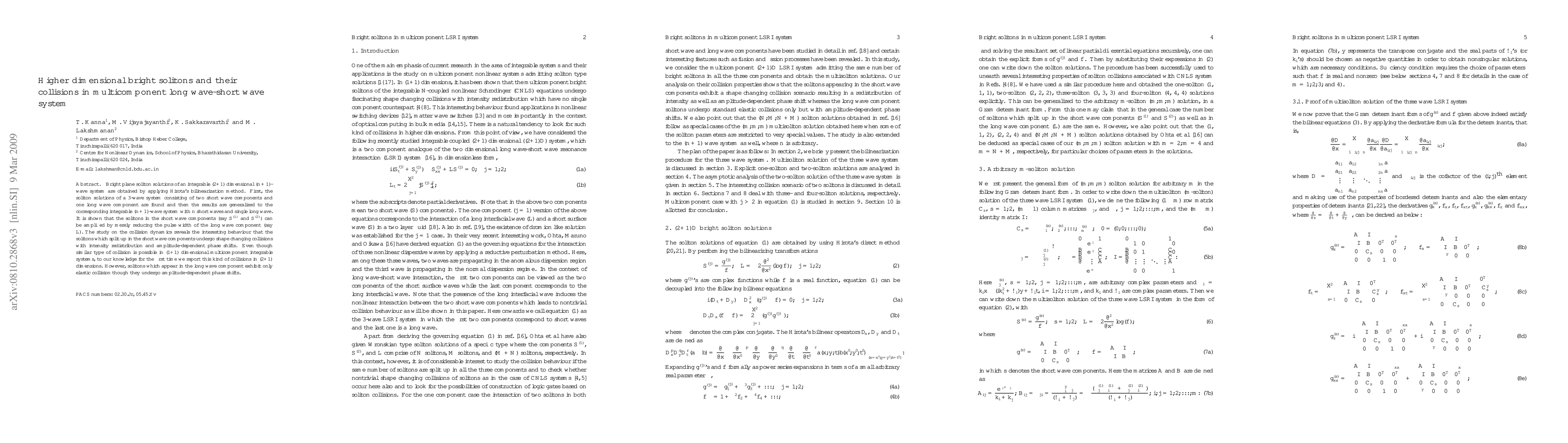 This paper explores bright soliton solutions in a (2+1) dimensional multicomponent wave system using Hirota's bilinearization method. It reveals unique collision dynamics where solitons in short wave components undergo shape-changing collisions, unlike the elastic collisions observed in long wave components.