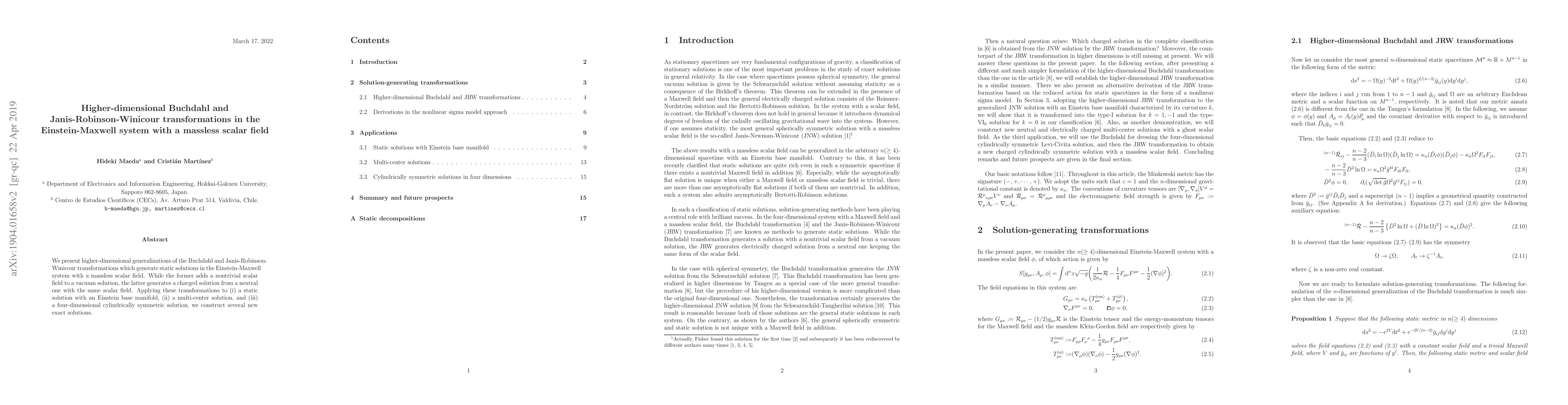 We present higher-dimensional generalizations of the Buchdahl and Janis-Robinson-Winicour transformations which generate static solutions in the Einstein-Maxwell system with a massless scalar field. While the former adds a nontrivial scalar field to a vacuum solution, the latter generates a charged solution from a neutral one with the same scalar field. Applying these transformations to (i) a static solution with an Einstein base manifold, (ii) a multi-center solution, and (iii) a four-dimensional cylindrically symmetric solution, we construct several new exact solutions.