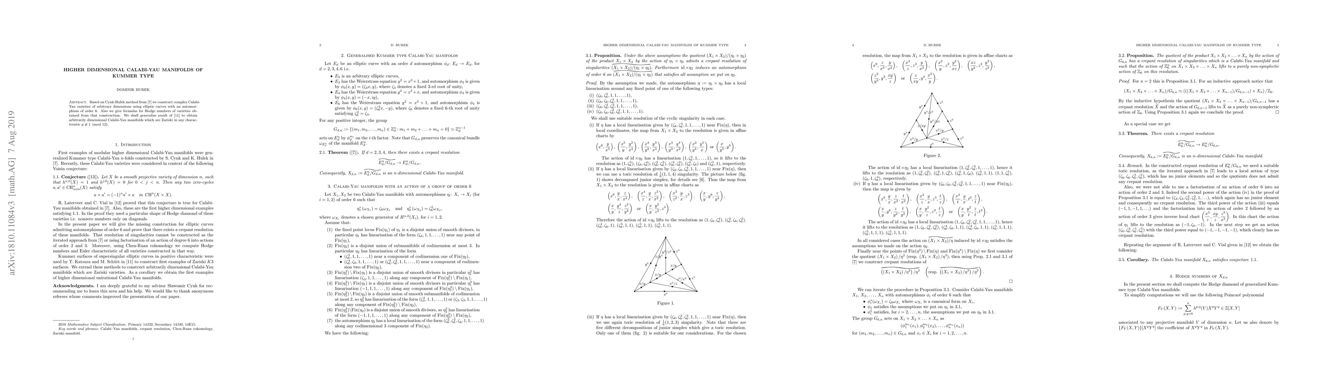 Based on Cynk-Hulek method we construct complex Calabi-Yau varieties of arbitrary dimensions using elliptic curves with automorphism of order 6. Also we give formulas for Hodge numbers of varieties obtained from that construction. We shall generalize result of Katsura and Sch\"utt to obtain arbitrarily dimensional Calabi-Yau manifolds which are Zariski in any characteristic $p\not\equiv 1\pmod{12}.$