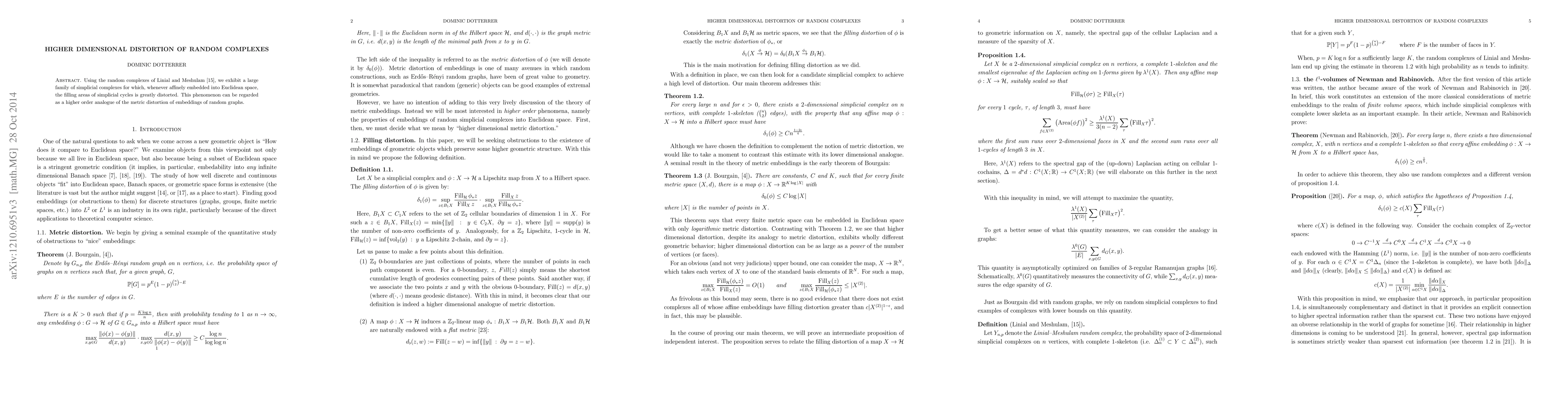 Using the random complexes of Linial and Meshulam, we exhibit a large family of simplicial complexes for which, whenever affinely embedded into Euclidean space, the filling areas of simplicial cycles is greatly distorted. This phenomenon can be regarded as a higher order analogue of the metric distortion of embeddings of random graphs.