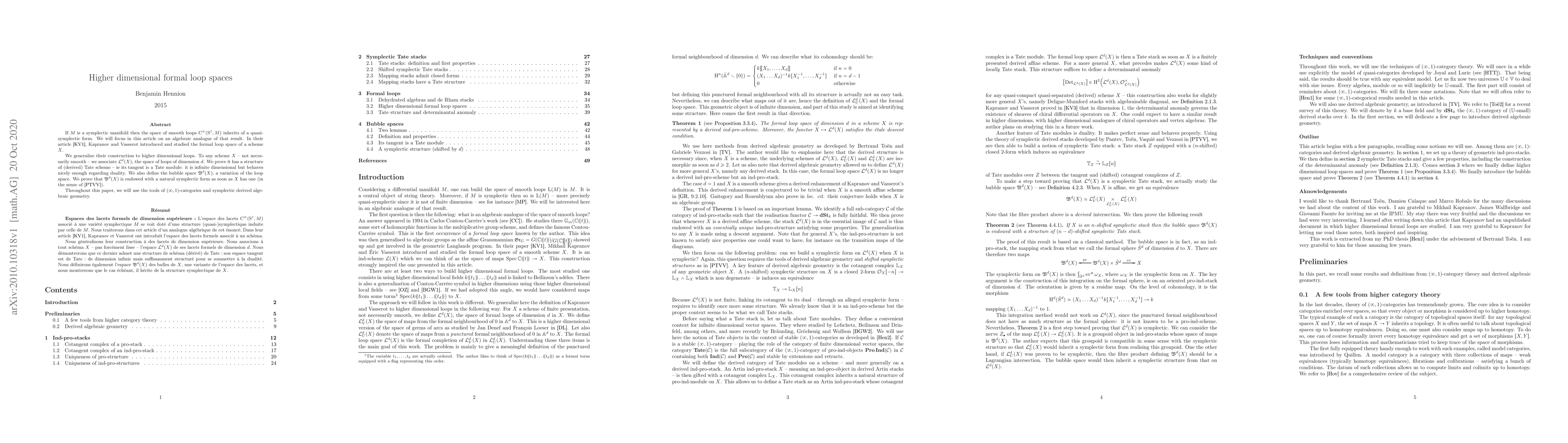 If $M$ is a symplectic manifold then the space of smooth loops $\mathrm C^{\infty}(\mathrm S^1,M)$ inherits of a quasi-symplectic form. We will focus in this article on an algebraic analogue of that result. In 2004, Kapranov and Vasserot introduced and studied the formal loop space of a scheme $X$. We generalize their construction to higher dimensional loops. To any scheme $X$ -- not necessarily smooth -- we associate $\mathcal L^d(X)$, the space of loops of dimension $d$. We prove it has a structure of (derived) Tate scheme -- ie its tangent is a Tate module: it is infinite dimensional but behaves nicely enough regarding duality. We also define the bubble space $\mathcal B^d(X)$, a variation of the loop space. We prove that $\mathcal B^d(X)$ is endowed with a natural symplectic form as soon as $X$ has one (in the sense of [PTVV]). Throughout this paper, we will use the tools of $(\infty,1)$-categories and symplectic derived algebraic geometry.
