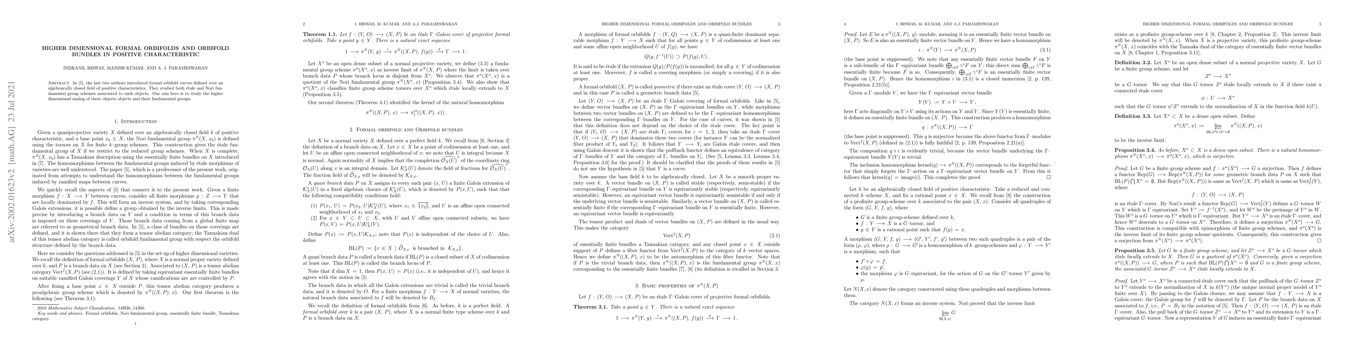 This paper extends the study of formal orbifold curves, introduced in \cite{KP}, to higher dimensions and examines their fundamental group schemes in the context of positive characteristic fields. It investigates the properties and structures of these higher dimensional formal orbifolds and their associated orbifold bundles.