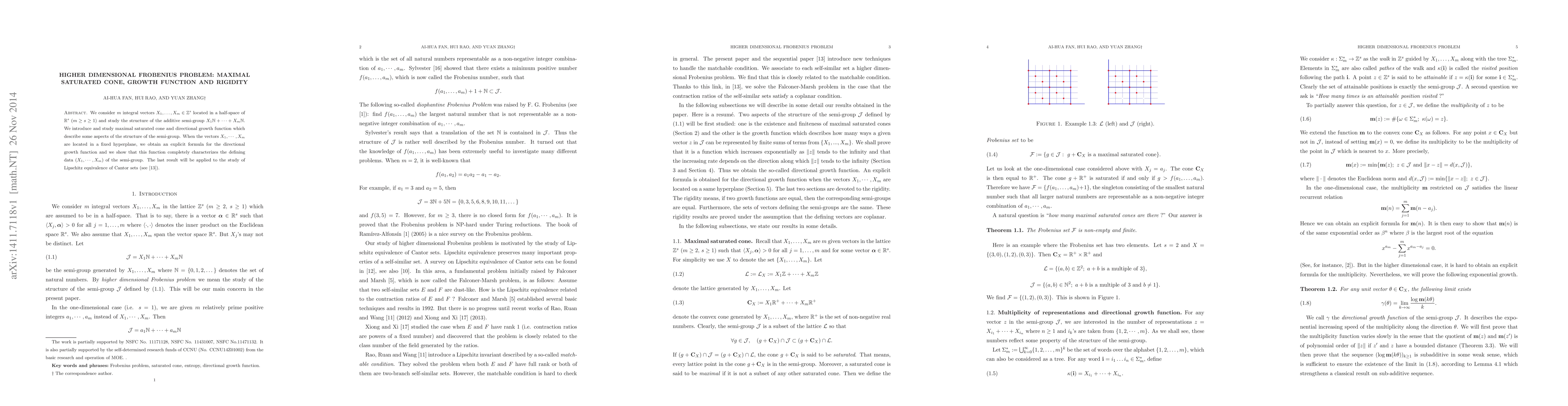 We consider $m$ integral vectors $X_1,...,X_m \in \mathbb{Z}^s$ located in a half-space of $\mathbb{R}^s$ ($m\ge s\geq 1$) and study the structure of the additive semi-group $X_1 \mathbb{N} +... + X_m \mathbb{N}$. We introduce and study maximal saturated cone and directional growth function which describe some aspects of the structure of the semi-group. When the vectors $X_1, ..., X_m$ are located in a fixed hyperplane, we obtain an explicit formula for the directional growth function and we show that this function completely characterizes the defining data $(X_1, ..., X_m)$ of the semi-group. The last result will be applied to the study of Lipschitz equivalence of Cantor sets (see [H. Rao and Y. Zhang, Higher dimensional Frobenius problem and Lipschitz equivalence of Cantor sets, Preprint 2014]).