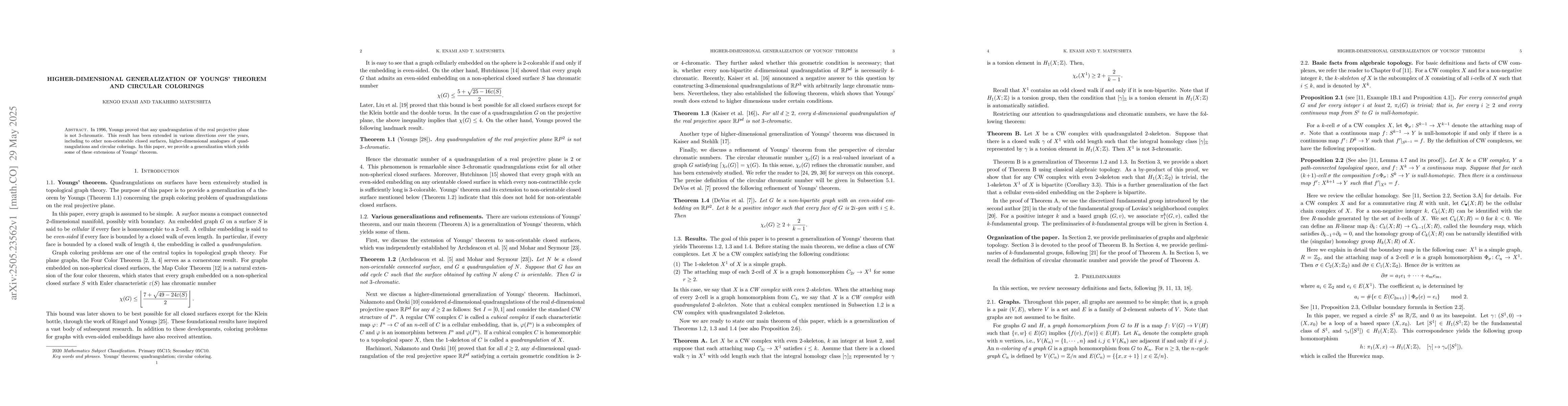 The paper generalizes Youngs' theorem by introducing a higher-dimensional framework and circular colorings, utilizing CW complexes and homology theory.